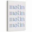 Start your day with elegance and simplicity with this Inspirational Kitchen Print featuring the repeated French word "Matin" (Morning). This minimalist design, with clean blue typography on a crisp white background, embodies the tranquility and energy of a fresh start. Perfect for coffee stations, breakfast nooks, or kitchen walls, this artwork brings a touch of Parisian charm to any space.