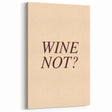 Add a touch of humor and sophistication to your kitchen or bar area with this Kitchen Wall Art with Quotes featuring the playful phrase, "Wine Not?" This minimalist design, with elegant typography on a warm beige background, is perfect for wine lovers and anyone who enjoys a good pun. Whether displayed in a kitchen, home bar, or dining space, this stylish artwork creates a fun and inviting atmosphere.
