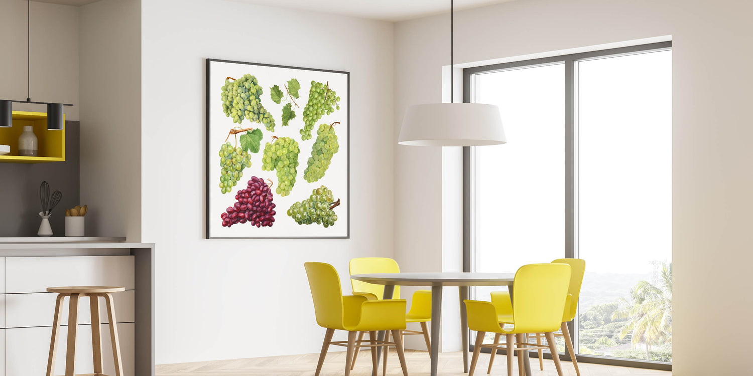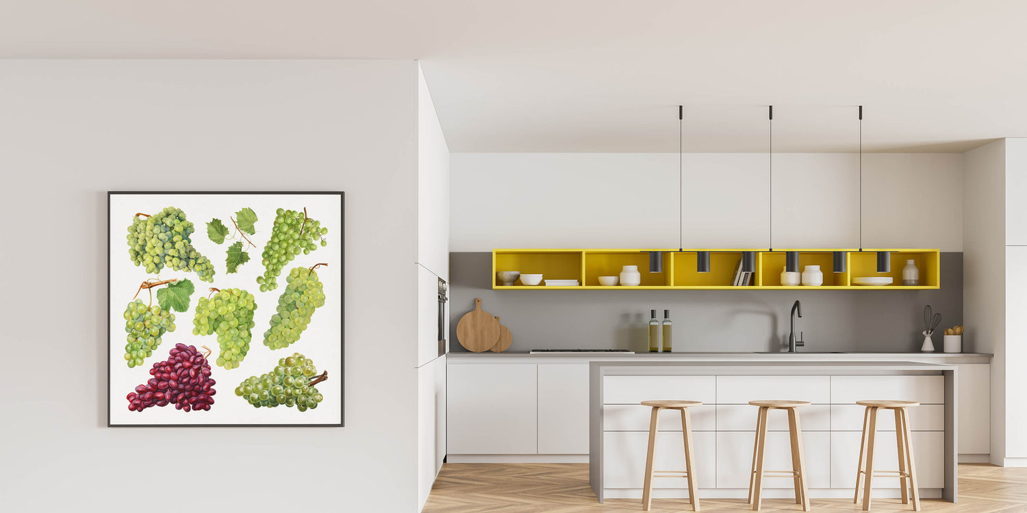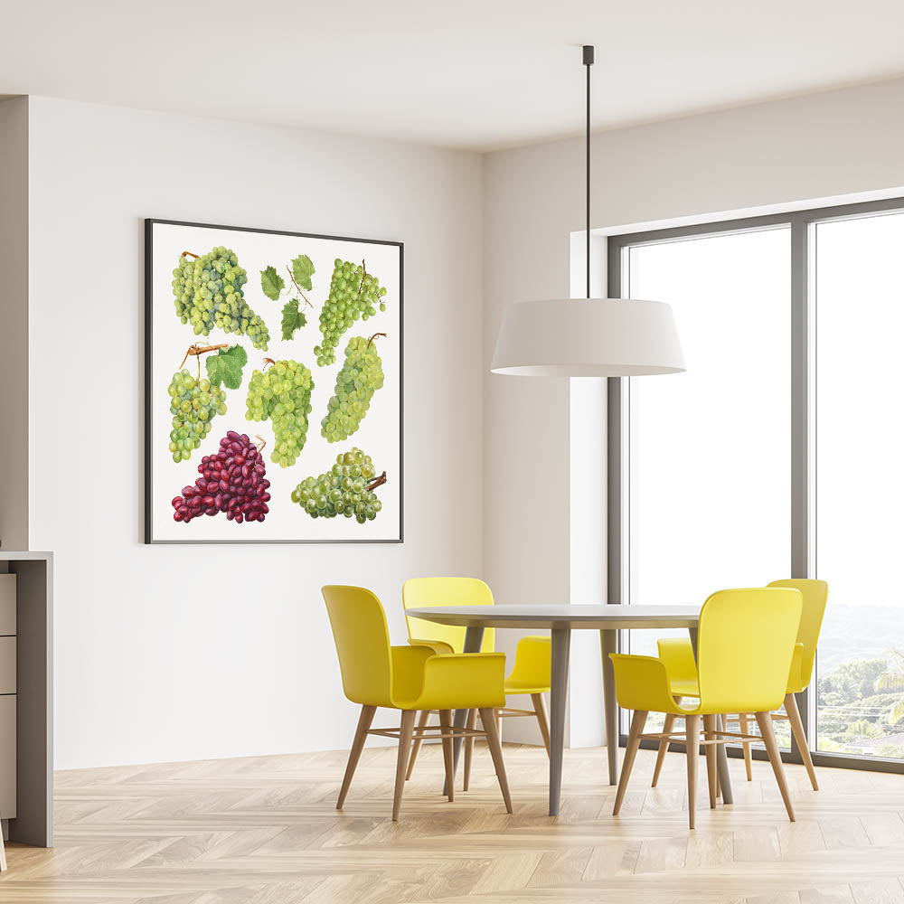 Ideal for lovers of fruit illustration prints and fruit still life art, this grape wall decor brings a sophisticated, nature-inspired aesthetic to any interior. A perfect gift for wine enthusiasts, chefs, and art lovers alike.