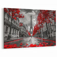 - High-quality Paris canvas print with vibrant red accents for a unique touch.