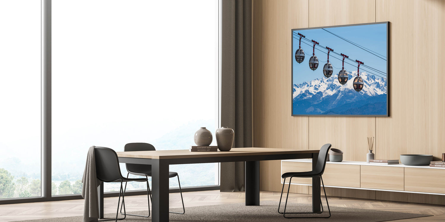 Add a touch of adventure to your space with this stunning French Alps wall art, featuring the iconic cable cars of the Chamonix Mont Blanc region. The bold red cable cars stand out against the crisp blue sky and majestic snow-covered peaks, creating a dynamic and thrilling scene. This art piece perfectly captures the essence of alpine life, where nature’s beauty meets the excitement of mountain exploration.