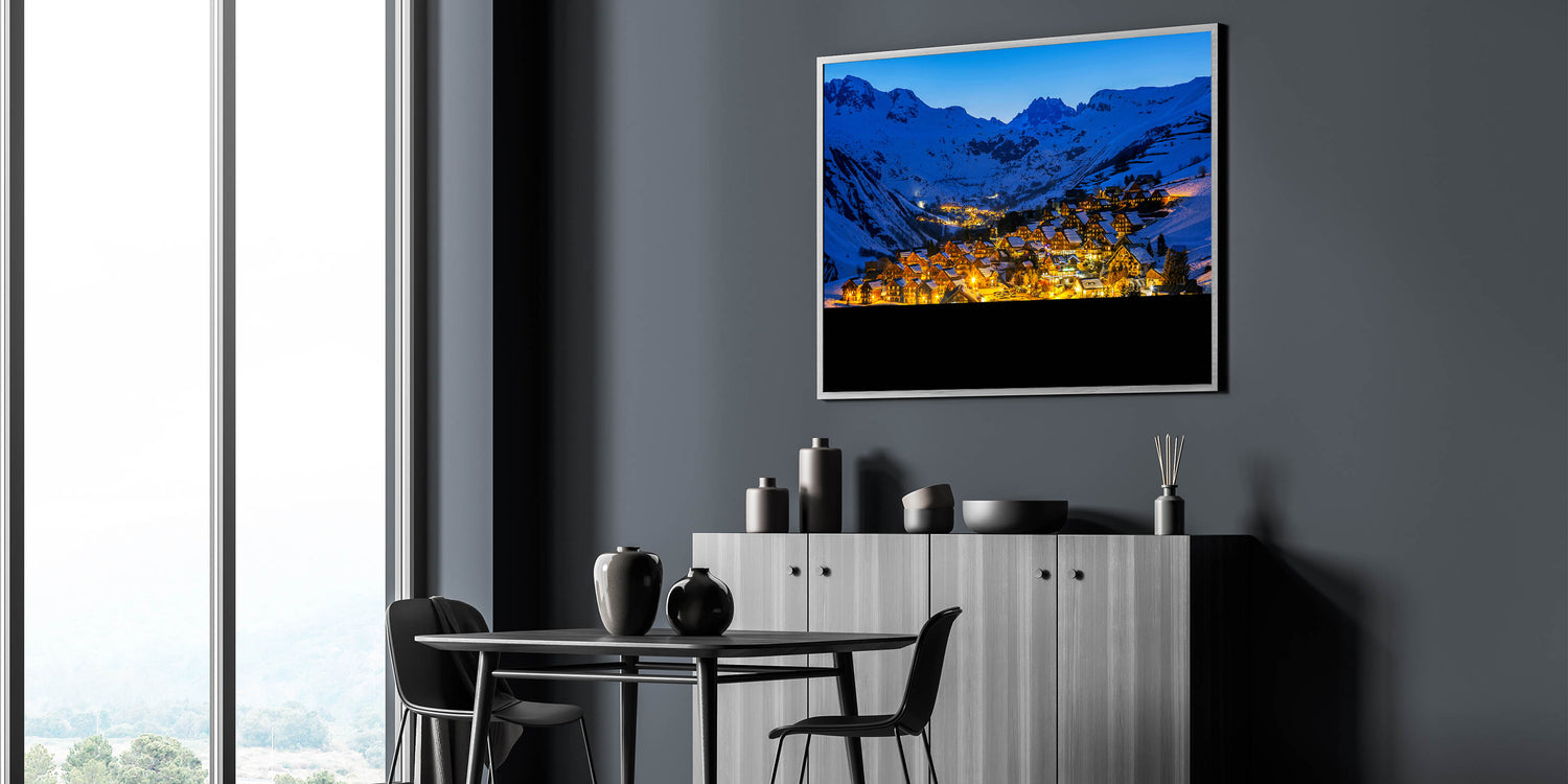 - High-quality French Alps canvas wall art available in various materials, including stretched canvas, acrylic glass, and framed prints.