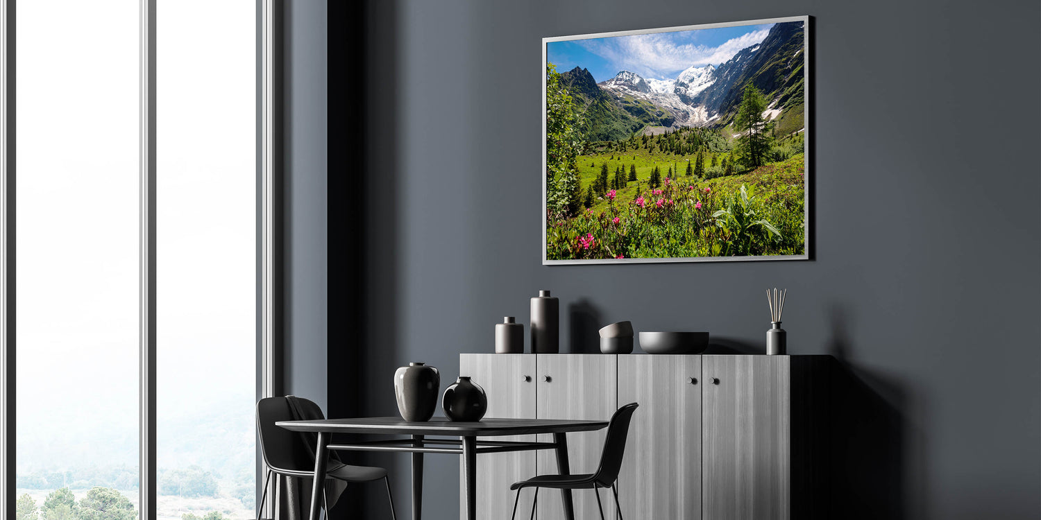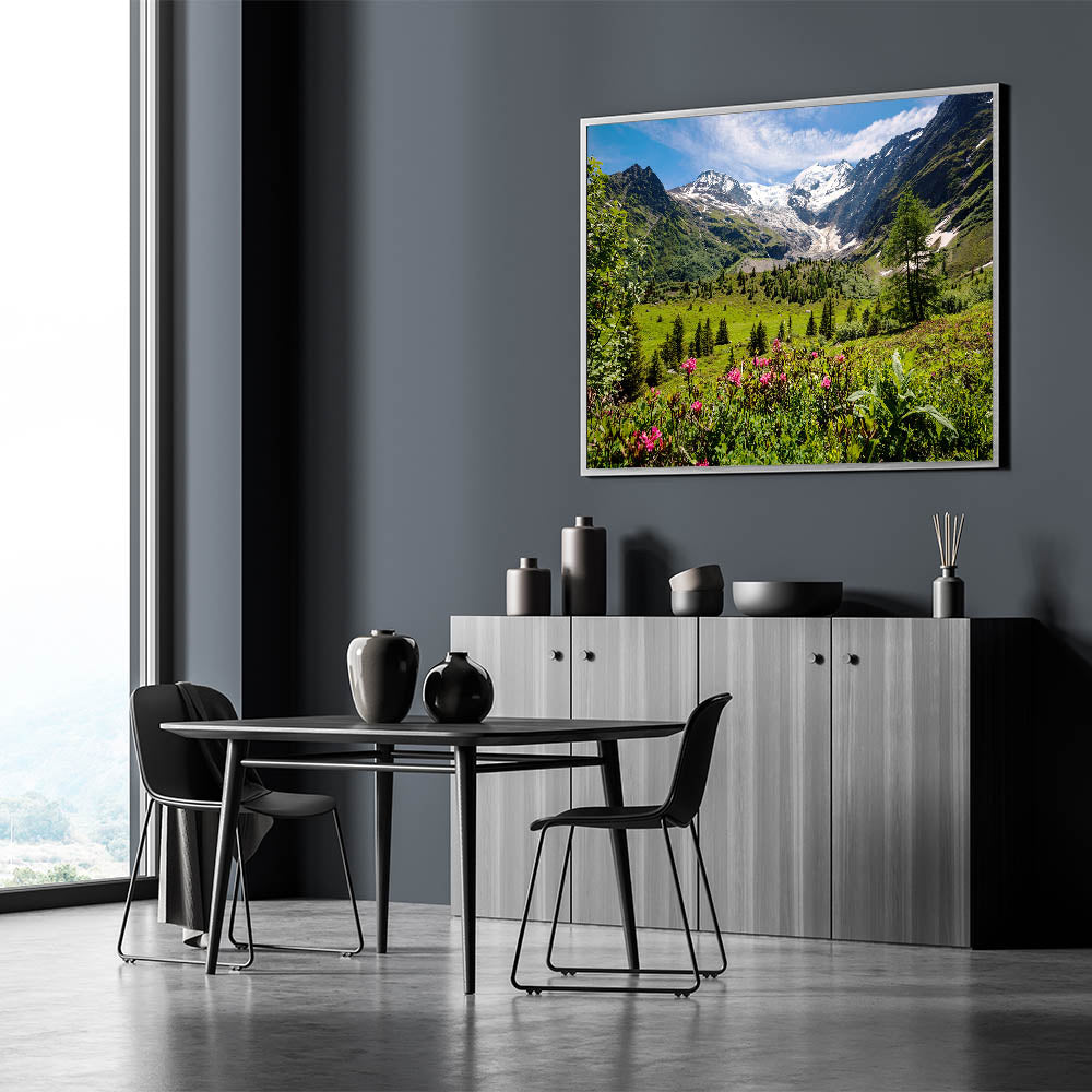 - Premium-quality French Alps canvas wall art available in materials like framed canvas, acrylic glass, and framed prints.