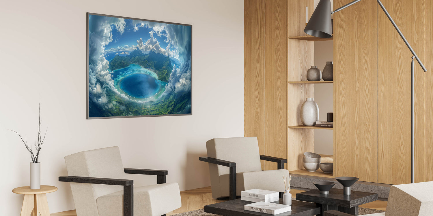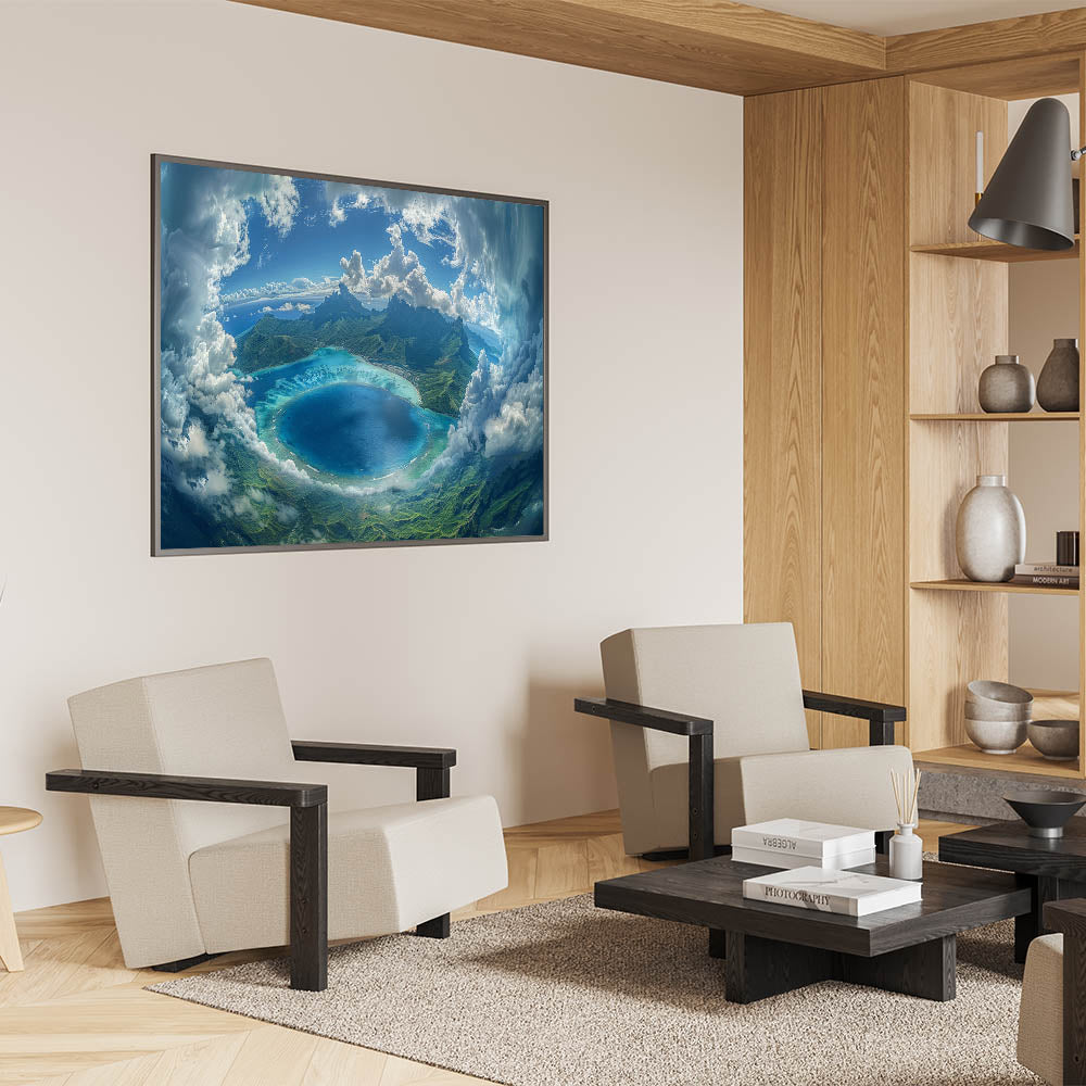 This masterpiece invites viewers to marvel at the wonders of Bora Bora, making it a perfect choice for anyone who appreciates grand landscapes or dreams of tropical destinations.