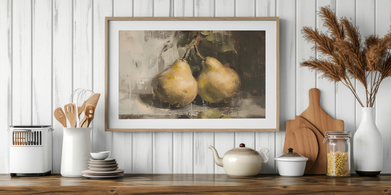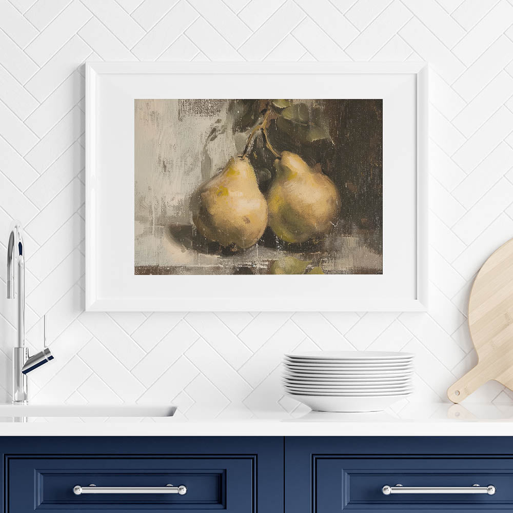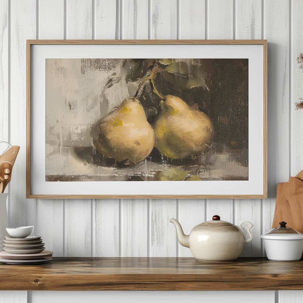 If you're searching for fruit art prints, fruit poster art, or a botanical-inspired kitchen decor piece, this pear still life artwork adds warmth and sophistication to your home.
