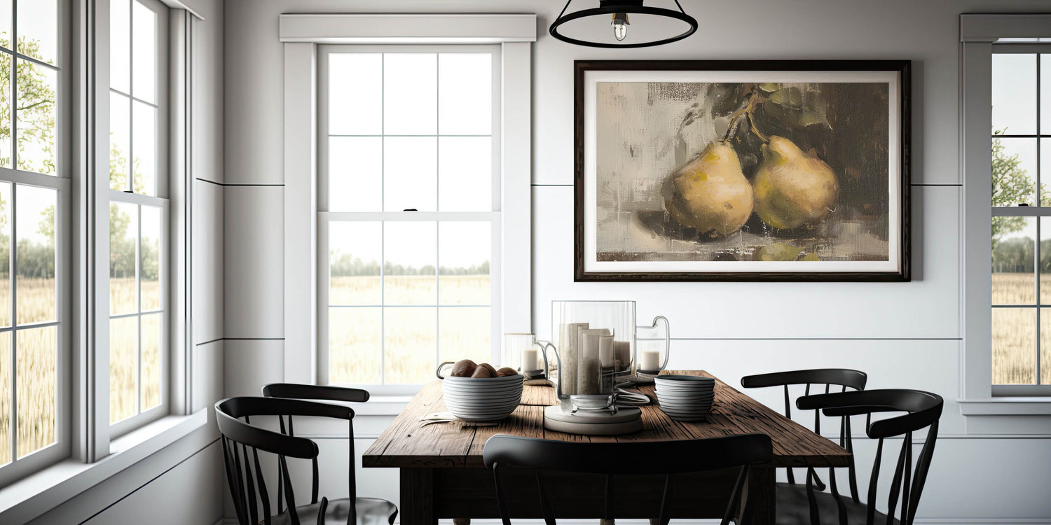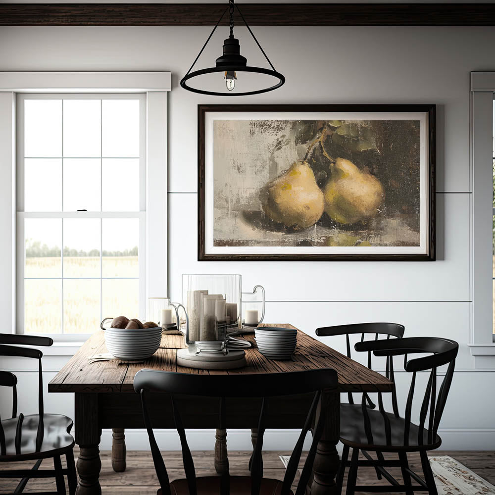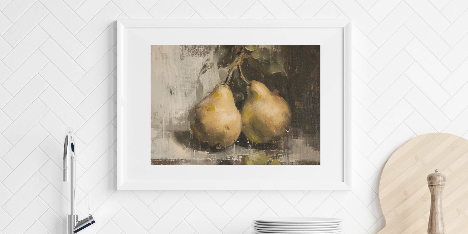 If you're searching for fruit art prints, fruit poster art, or a botanical-inspired kitchen decor piece, this pear still life artwork adds warmth and sophistication to your home.