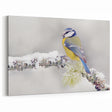 Winter Garden Birds Wall Art - Blue and Yellow Bird in Snowy Scene