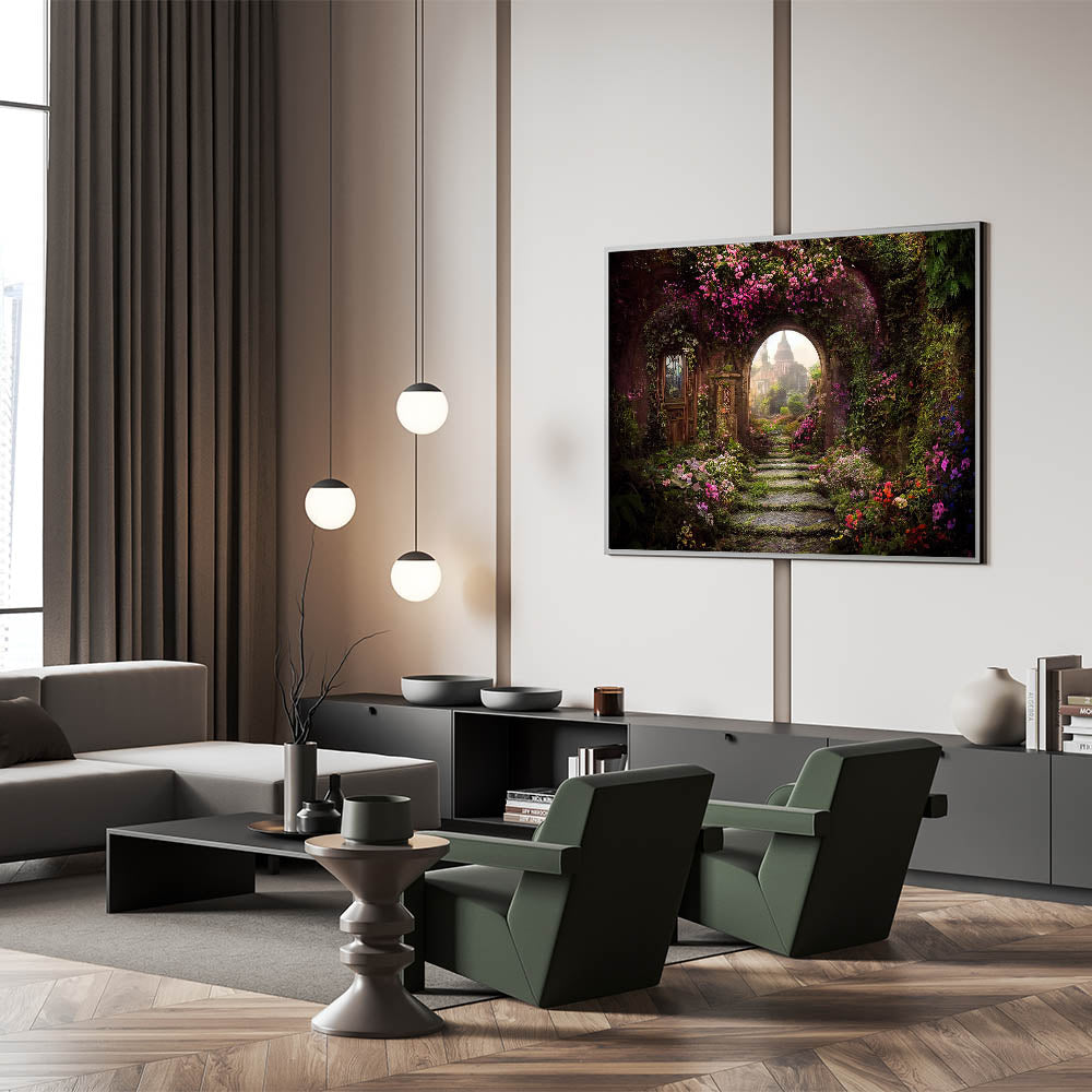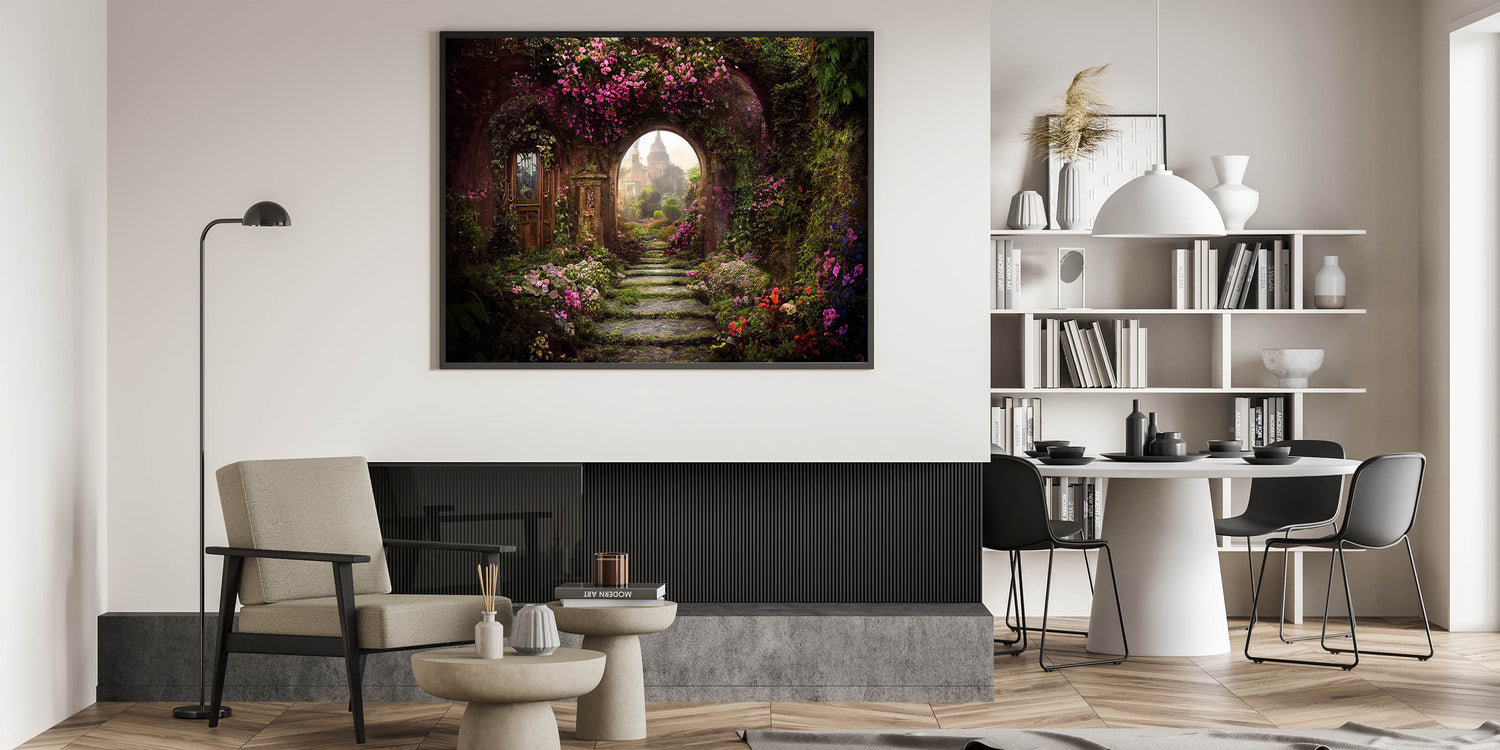 Step into a world of enchantment with our Mystical Garden Arch Wall Art. This captivating piece portrays an ancient garden archway leading to a lush, flower-filled landscape, with an aura of mystery and timeless beauty. Perfect for those who wish to add a touch of fantasy and elegance to their home decor.