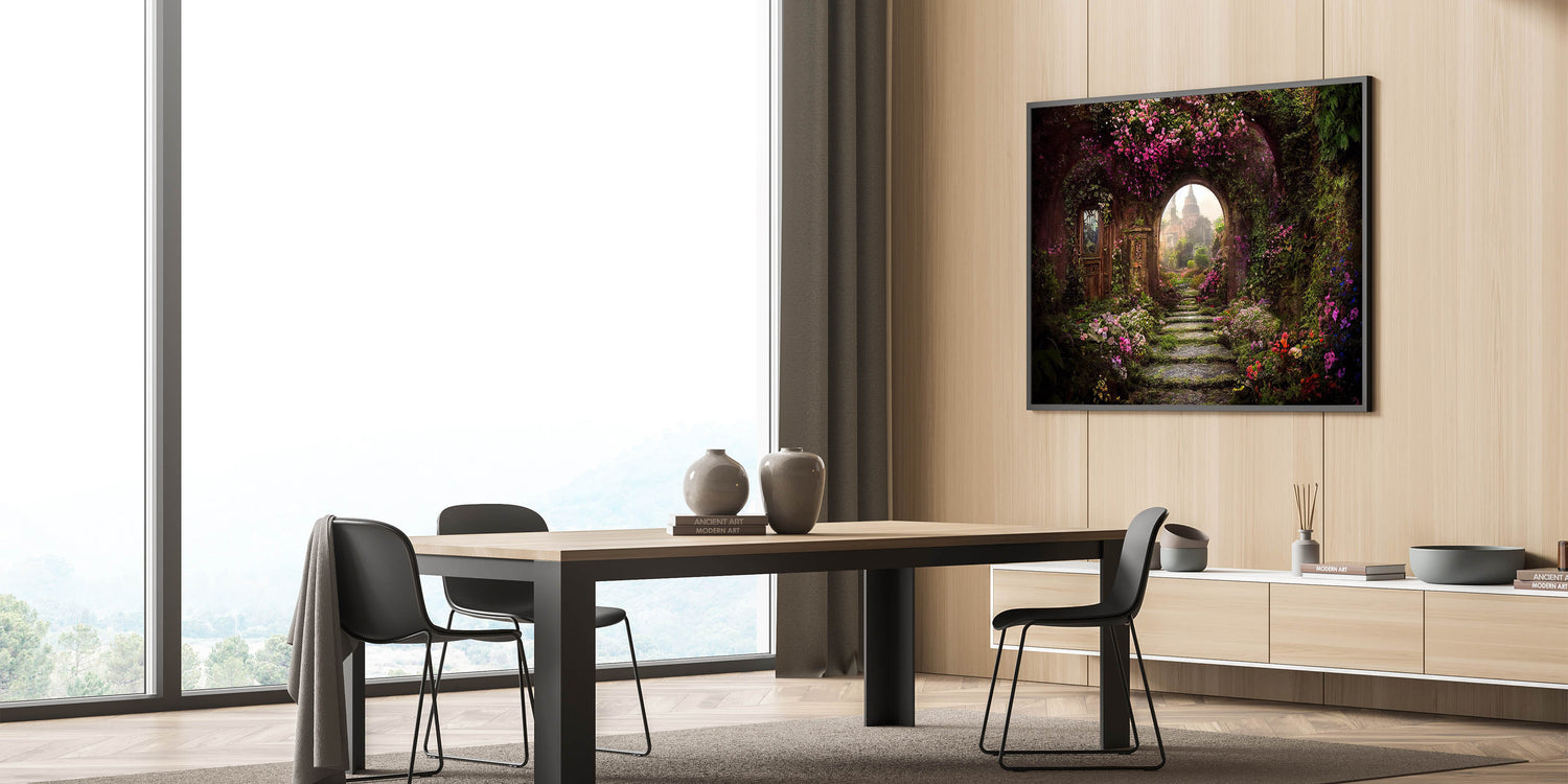 • Rich, Detailed Artwork: The deep greens, vibrant pinks, and mystical ambiance of the garden are rendered in exquisite detail, creating a mesmerizing focal point in any room.