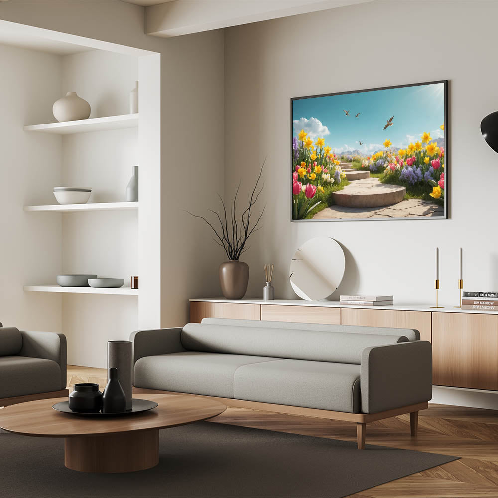 - Bright and Lifelike Details: The vivid yellows, pinks, and purples are rendered with stunning clarity, bringing the fresh and invigorating feel of a spring garden into any room.