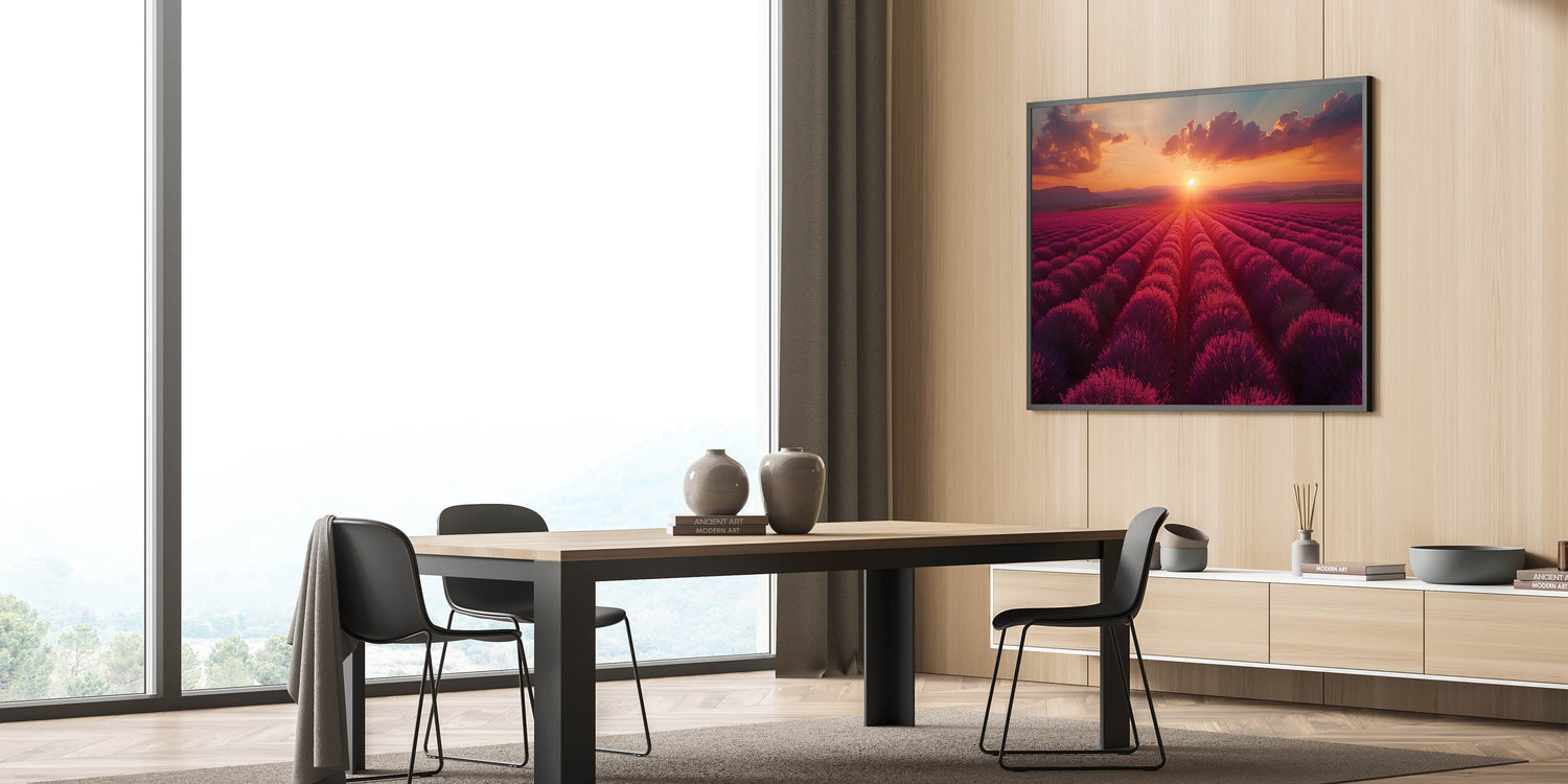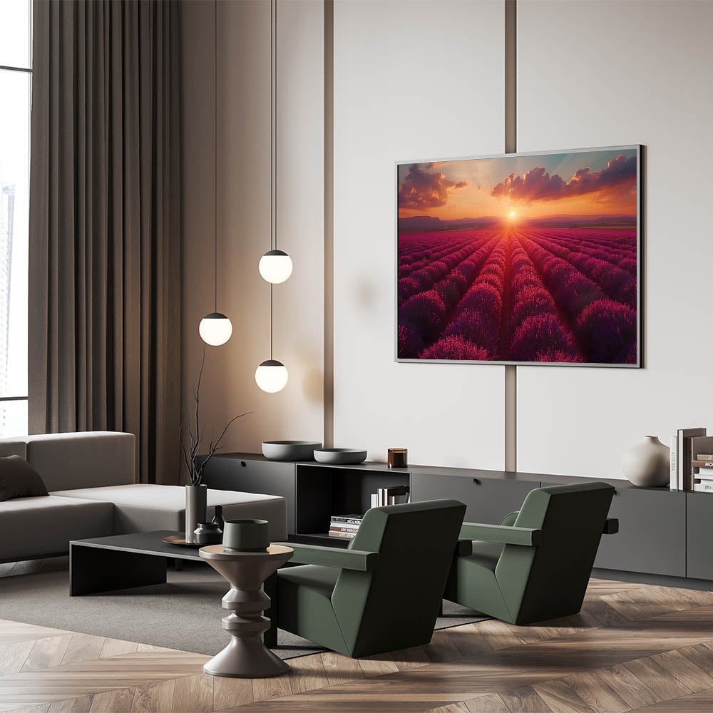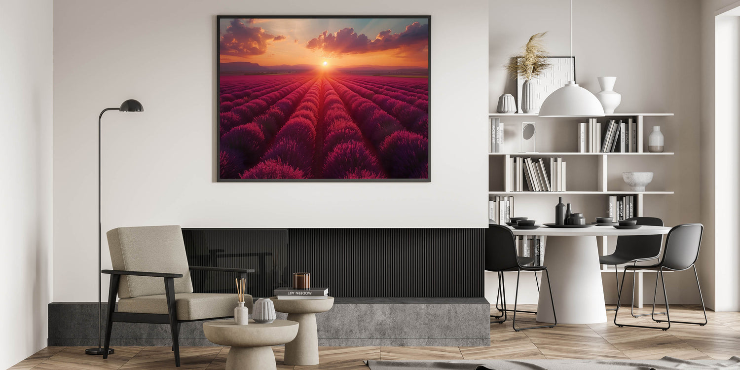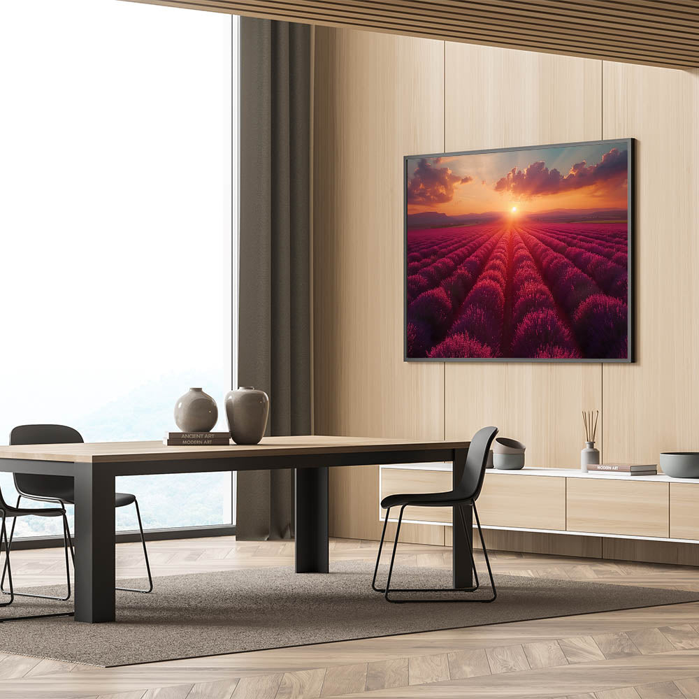 - Vivid and Lush Colors: The rich purples of the lavender and the warm oranges of the sunset are rendered with exceptional clarity, creating a vibrant and peaceful atmosphere in any room.