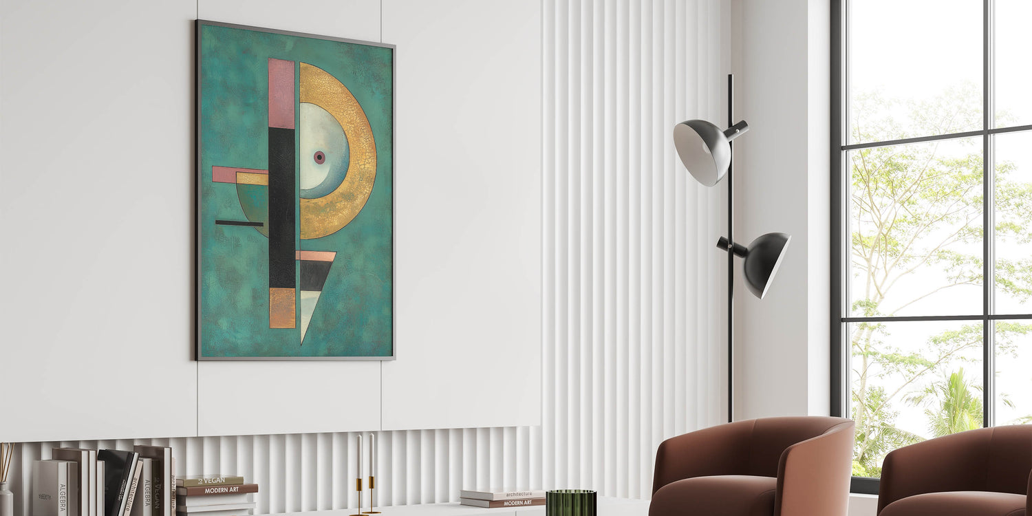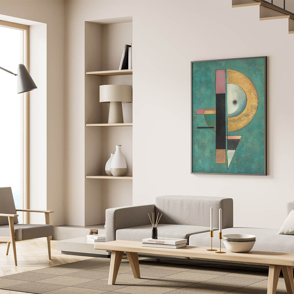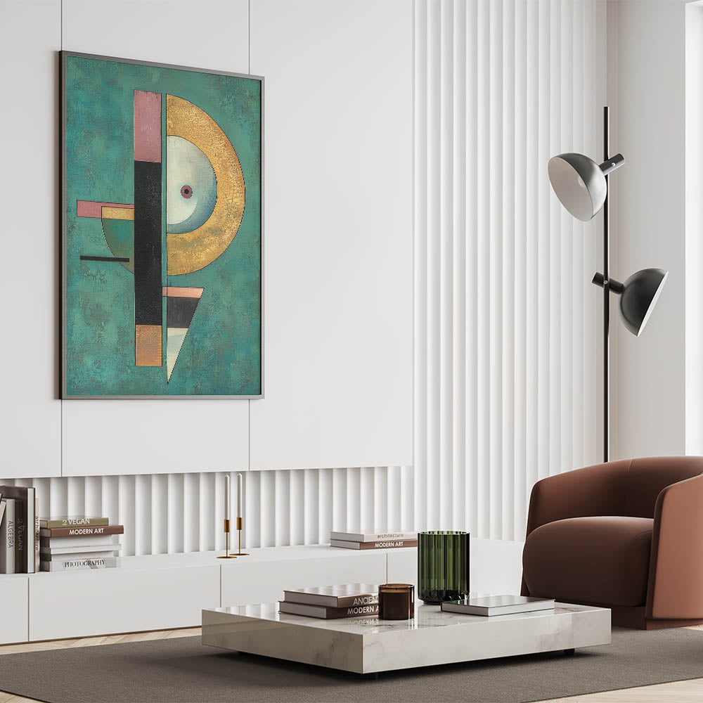 This abstract art for living rooms embodies creativity and elegance, making it a perfect choice for those looking to elevate their decor with modern geometric art prints. It is not just a painting; it's a celebration of geometric art decor for the discerning art enthusiast.