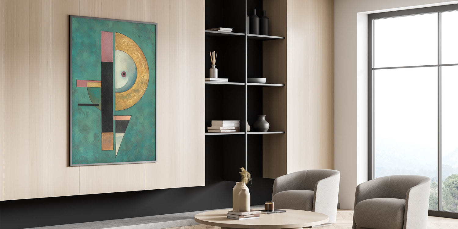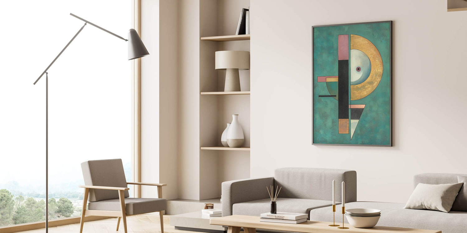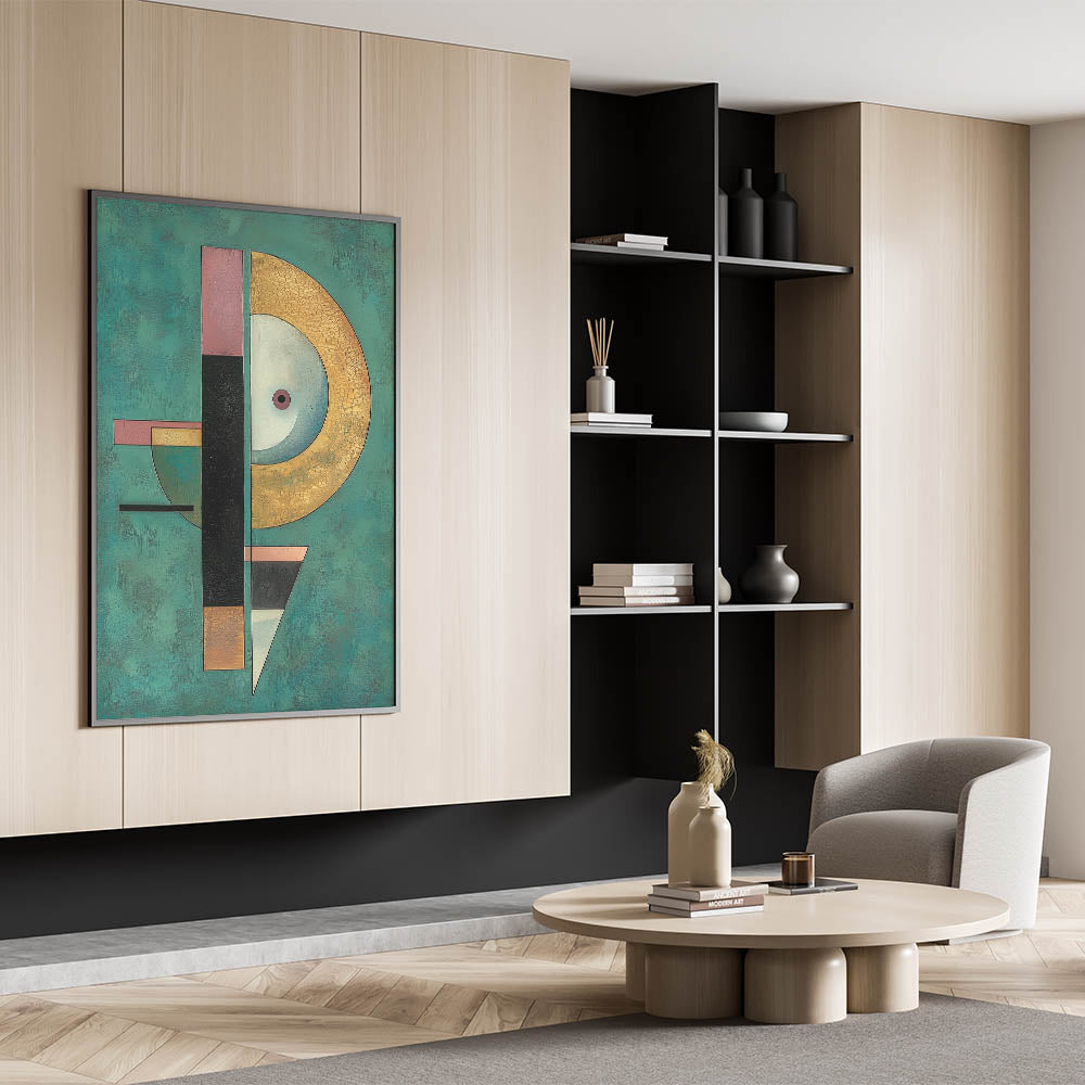 This abstract art for living rooms embodies creativity and elegance, making it a perfect choice for those looking to elevate their decor with modern geometric art prints. It is not just a painting; it's a celebration of geometric art decor for the discerning art enthusiast.