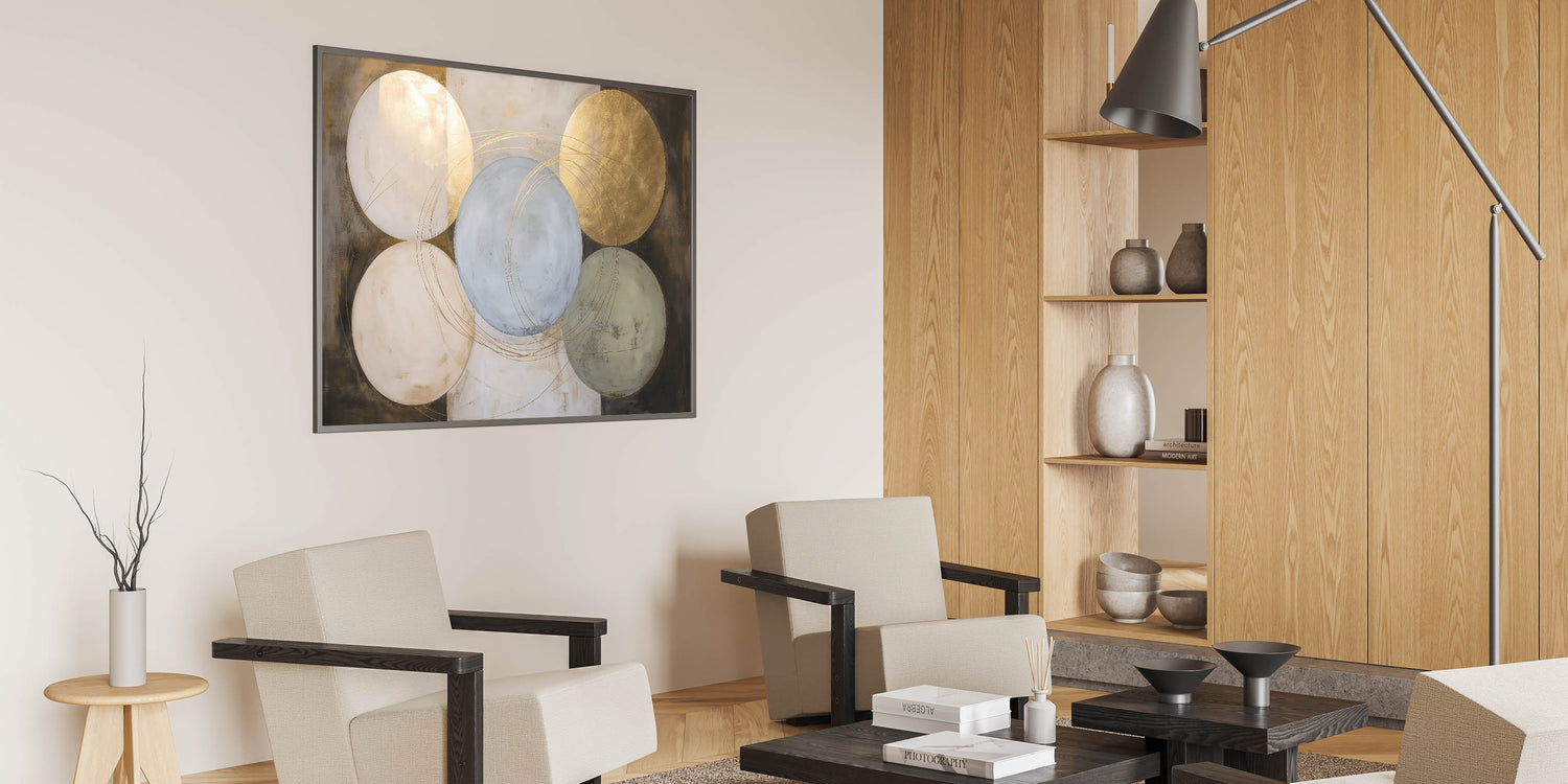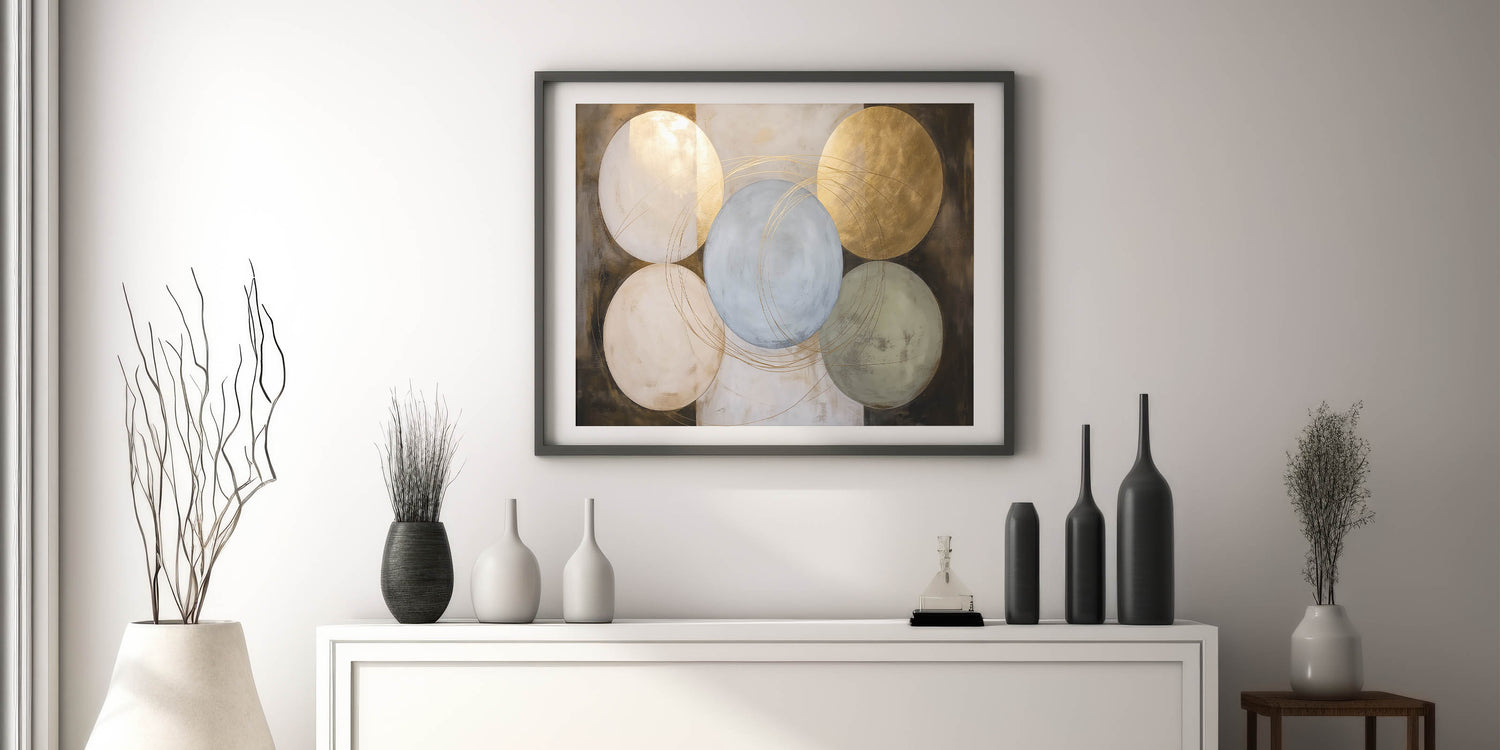 Abstract Geometric Wall Art - Gold and Neutral Circular Design