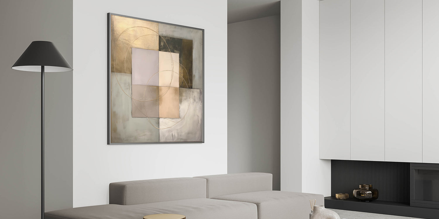 This artwork is ideal for adding a touch of sophistication to modern and contemporary decor. Its subtle tones and metallic details bring warmth and refinement, making it a versatile addition to any space. Whether displayed as a focal piece or part of a gallery wall, this design elevates your interior with its artistic charm.