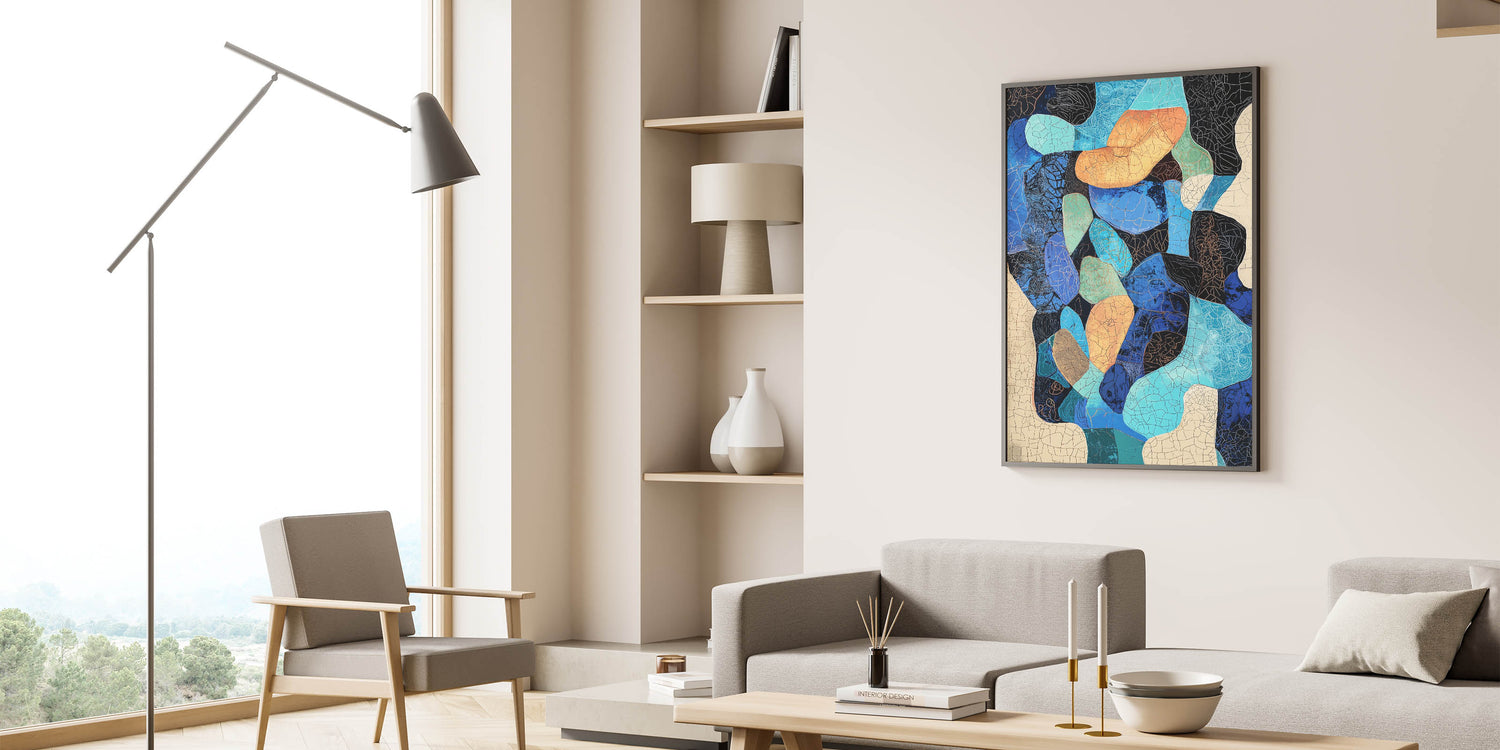 Abstract Mosaic Wall Art - Vibrant Blue, Orange, and Teal Patterns