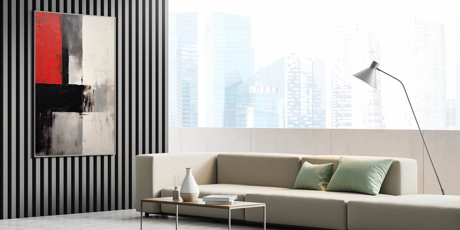 Bold Abstract Minimalist Wall Art: Red, Black, and White Geometric Design