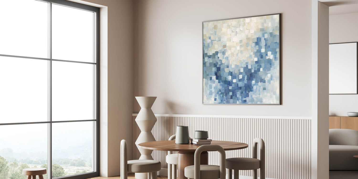 Contemporary Abstract Canvas – Mosaic Motion in Soft Blues