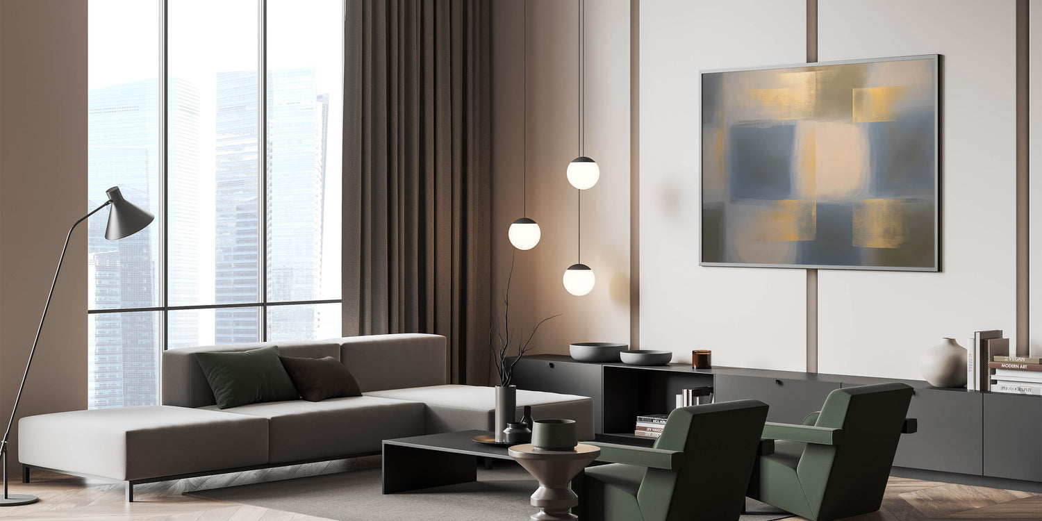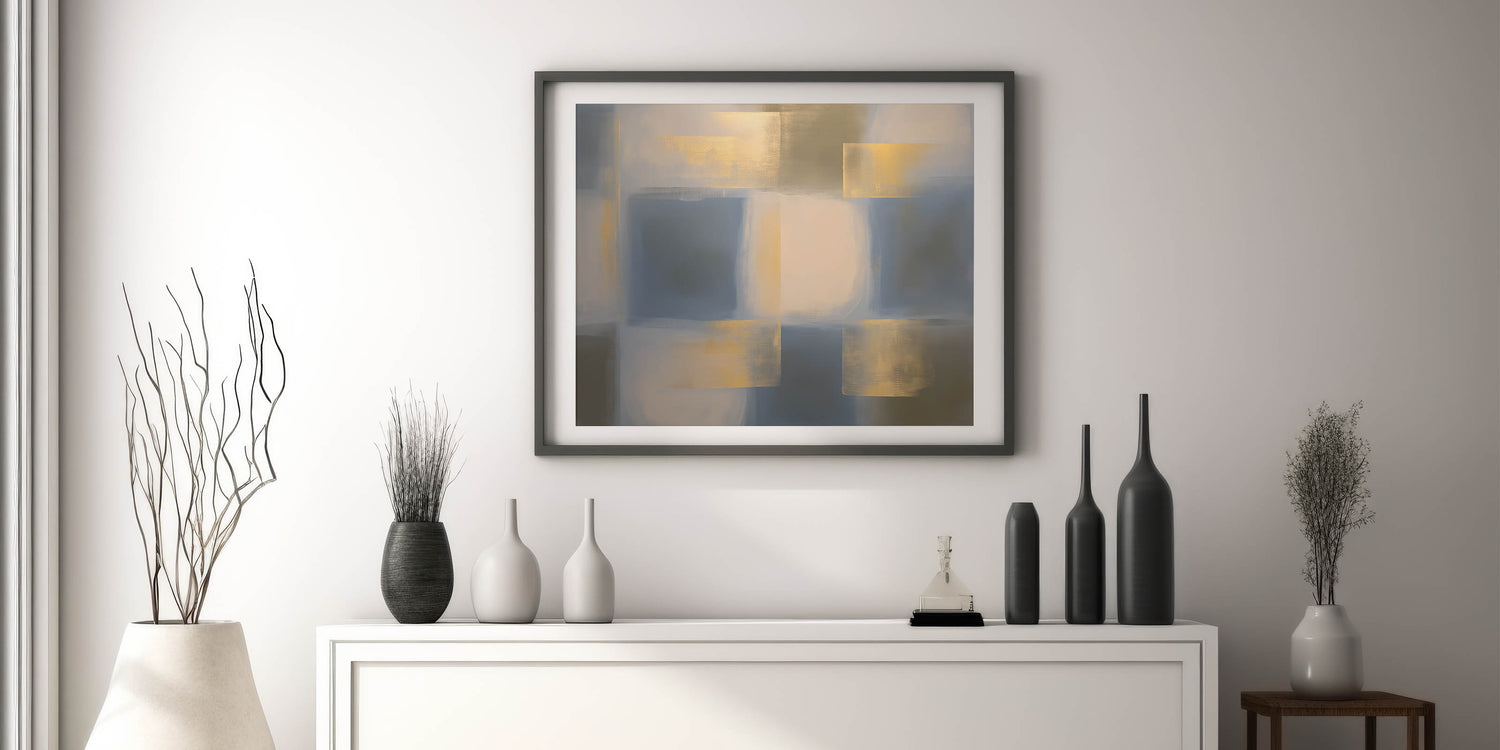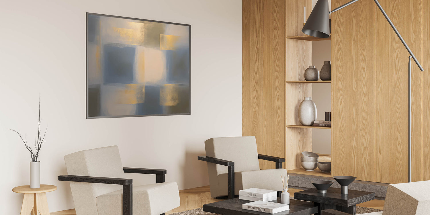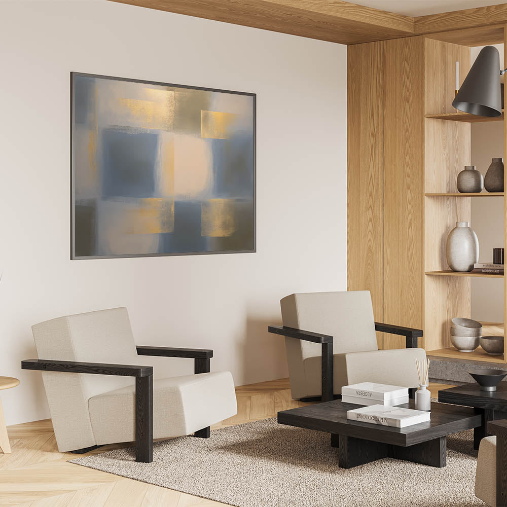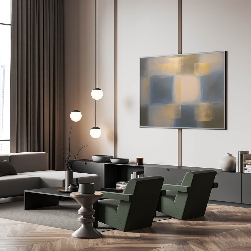 Whether you’re curating a minimalist interior or a more eclectic space, this abstract art for living rooms elevates the ambiance with its geometric patterns and timeless design. It's a perfect addition for art enthusiasts who appreciate contemporary art pieces with understated elegance.
