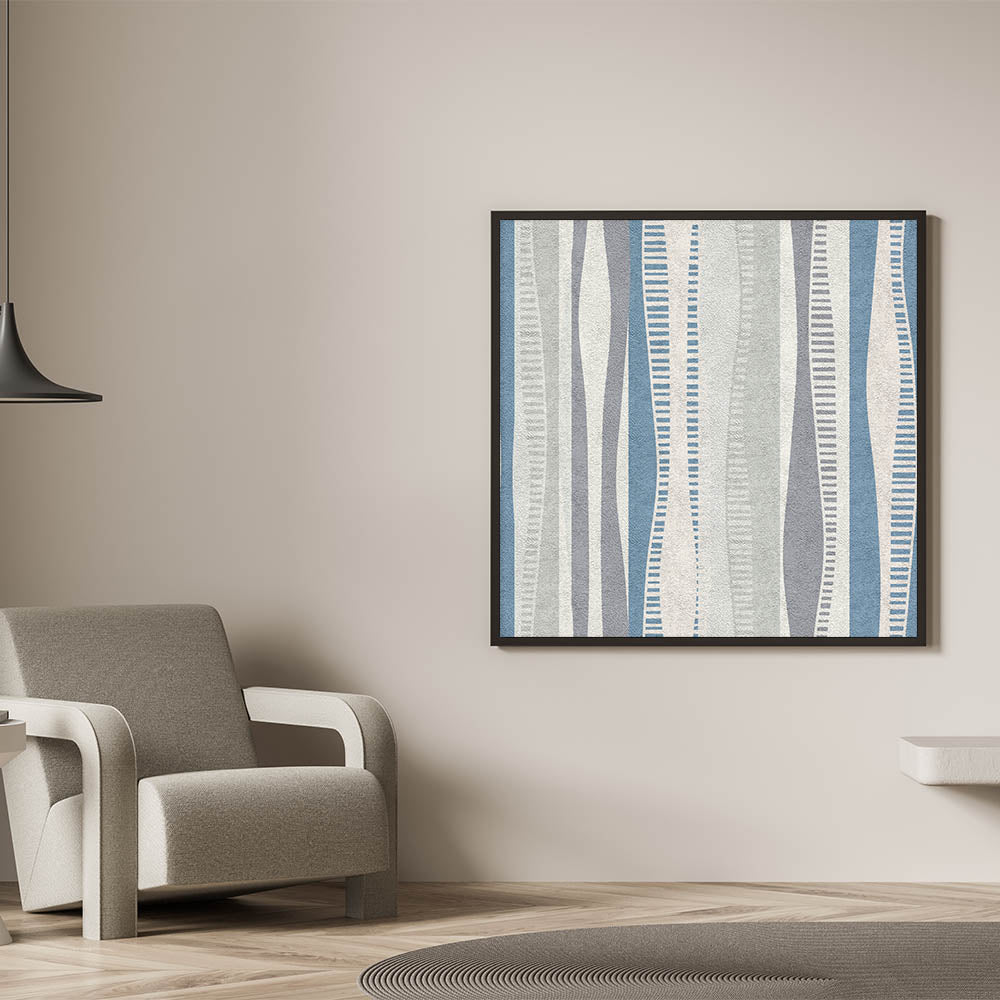 Energize your space with this Geometric Abstract Canvas Art from the Timeless Textures collection. Featuring undulating vertical stripes and rhythmic linework in soft sky blue, teal, and gray, this artwork brings a fresh and modern vibe to any room. Its clean palette and wave-like motion add both structure and fluidity to your wall.