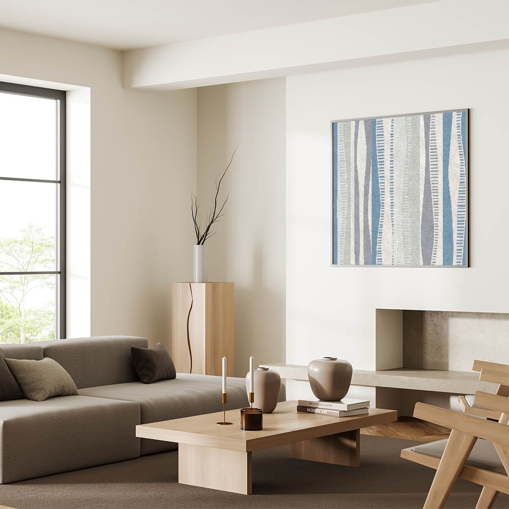 Perfect for contemporary interiors, this large abstract wall décor brings lightness and flow to living rooms, offices, or creative spaces. Whether displayed as framed abstract art or minimalist rolled canvas, it offers geometric elegance with a calming, coastal touch. Explore our textured acrylic wall art options and refresh your space with a piece that blends motion and design.