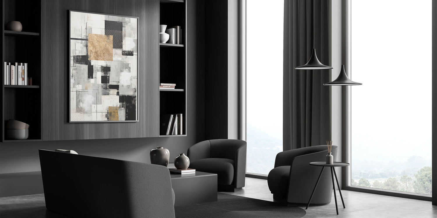 Geometric Modern Abstract Wall Art - Black, Gold, and Gray Canvas