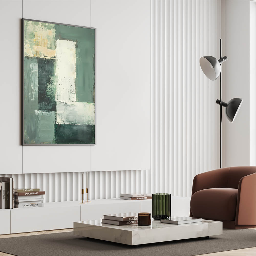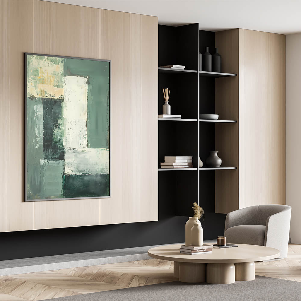Enhance your space with the natural elegance of this layered green tones abstract art, featuring rich shades of green, cream, and beige. The textured layers and organic composition evoke a sense of calm and depth, making it perfect for modern, nature-inspired, and minimalist interiors. Available in a range of formats, including stretched canvas, acrylic glass, and framed prints, this artwork brings a refined touch of nature into any room.