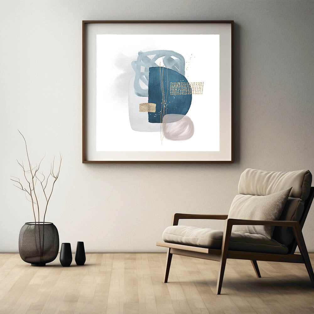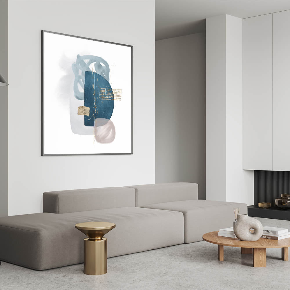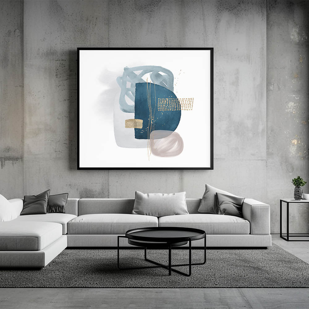 Introduce depth and sophistication to your interiors with these minimalist abstract canvas prints, featuring a striking blend of navy blue, light gray-blue, beige, and soft gold accents. This piece is part of our exclusive Contemporary Minimalist Wall Art series, offering artistic flair through geometric balance and refined color harmony.