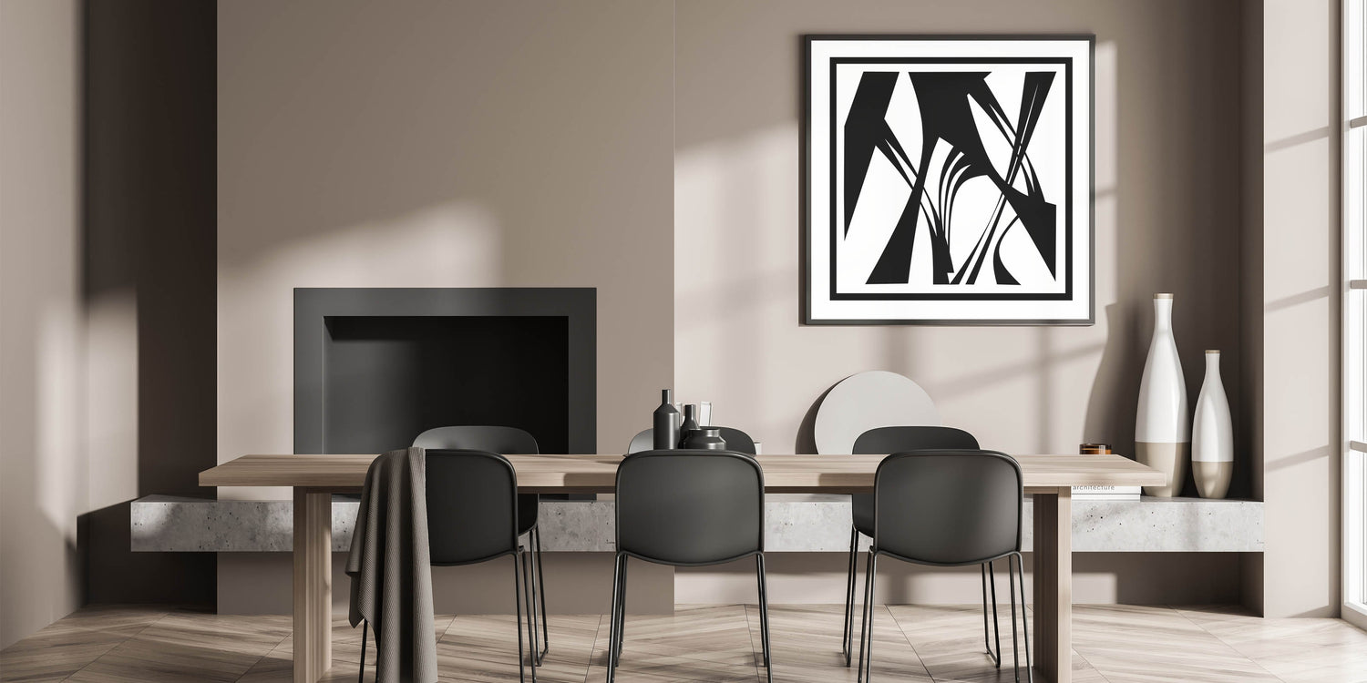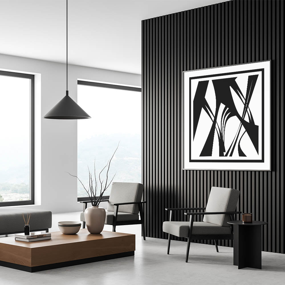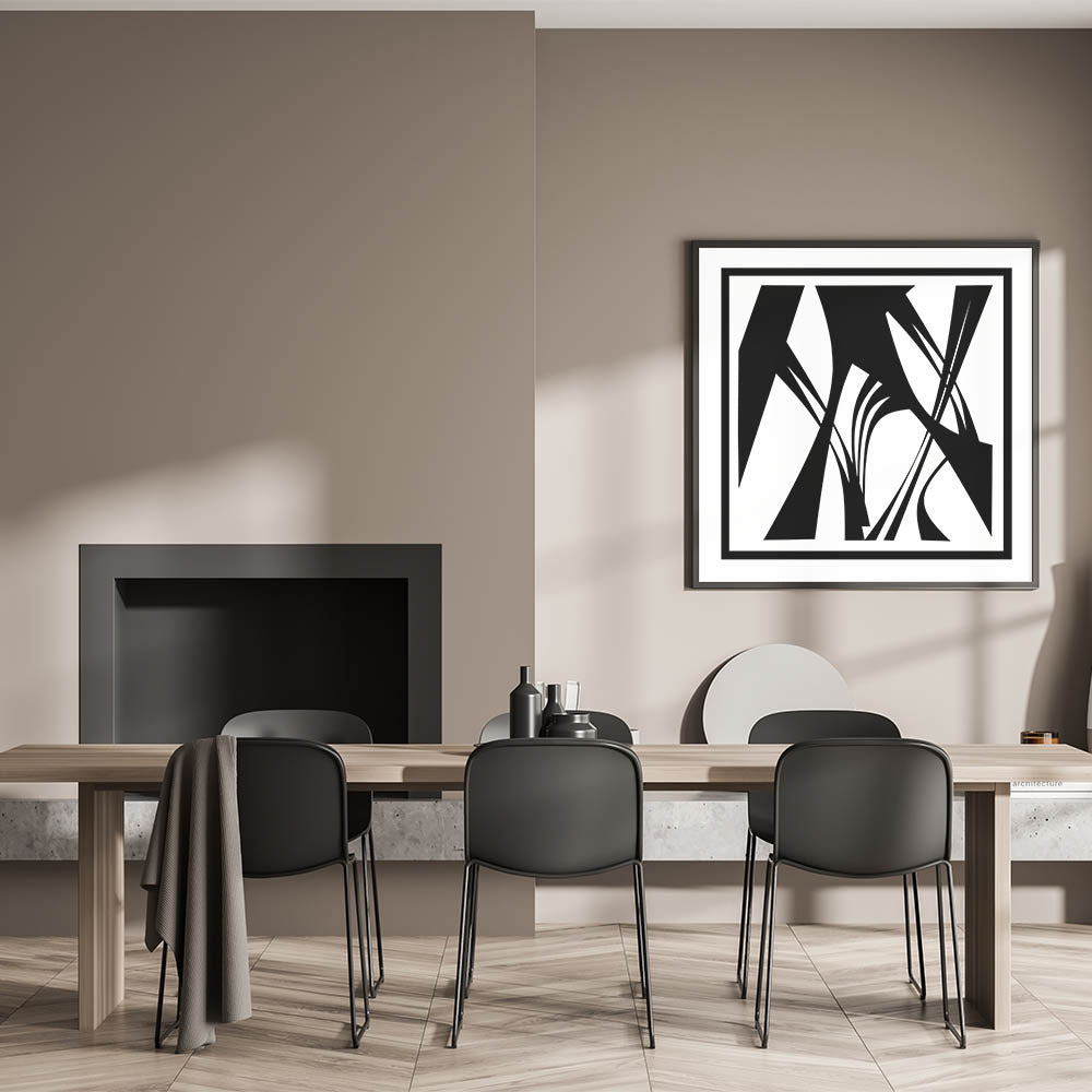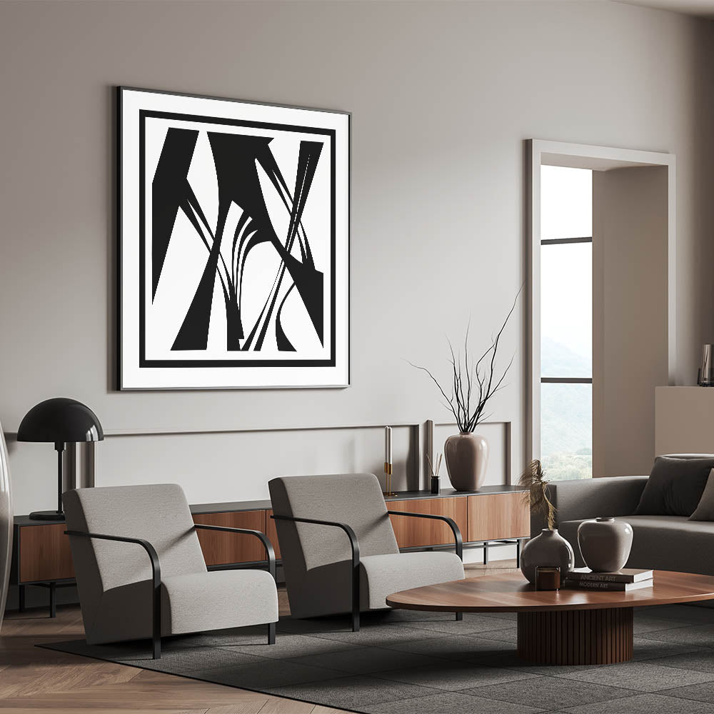 Elevate your space with this minimalist black and white abstract canvas. This artistic monochrome design features bold, intersecting lines and shapes, creating a striking visual effect that is both modern and sophisticated. The clean lines and geometric patterns make this piece a perfect addition to any contemporary decor.