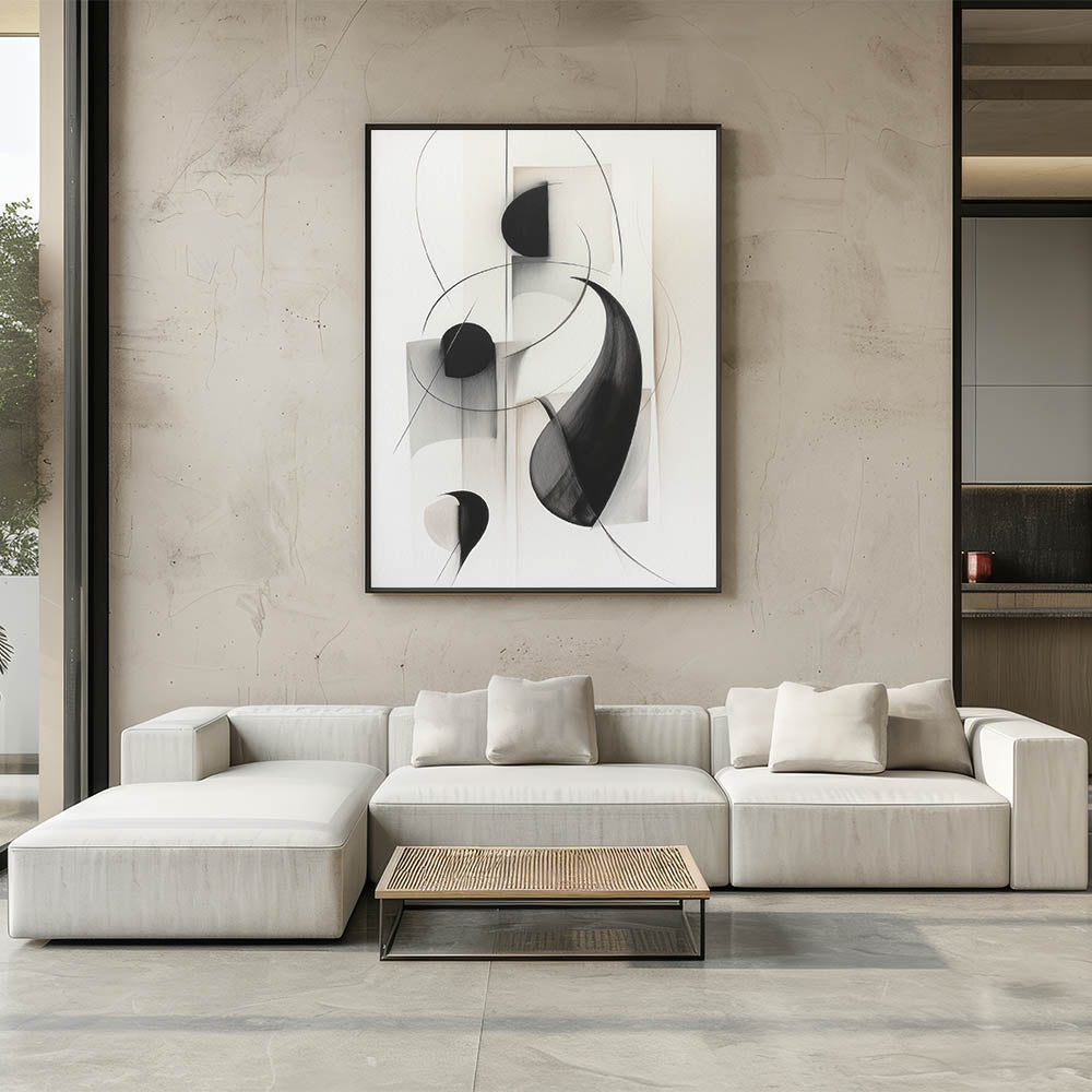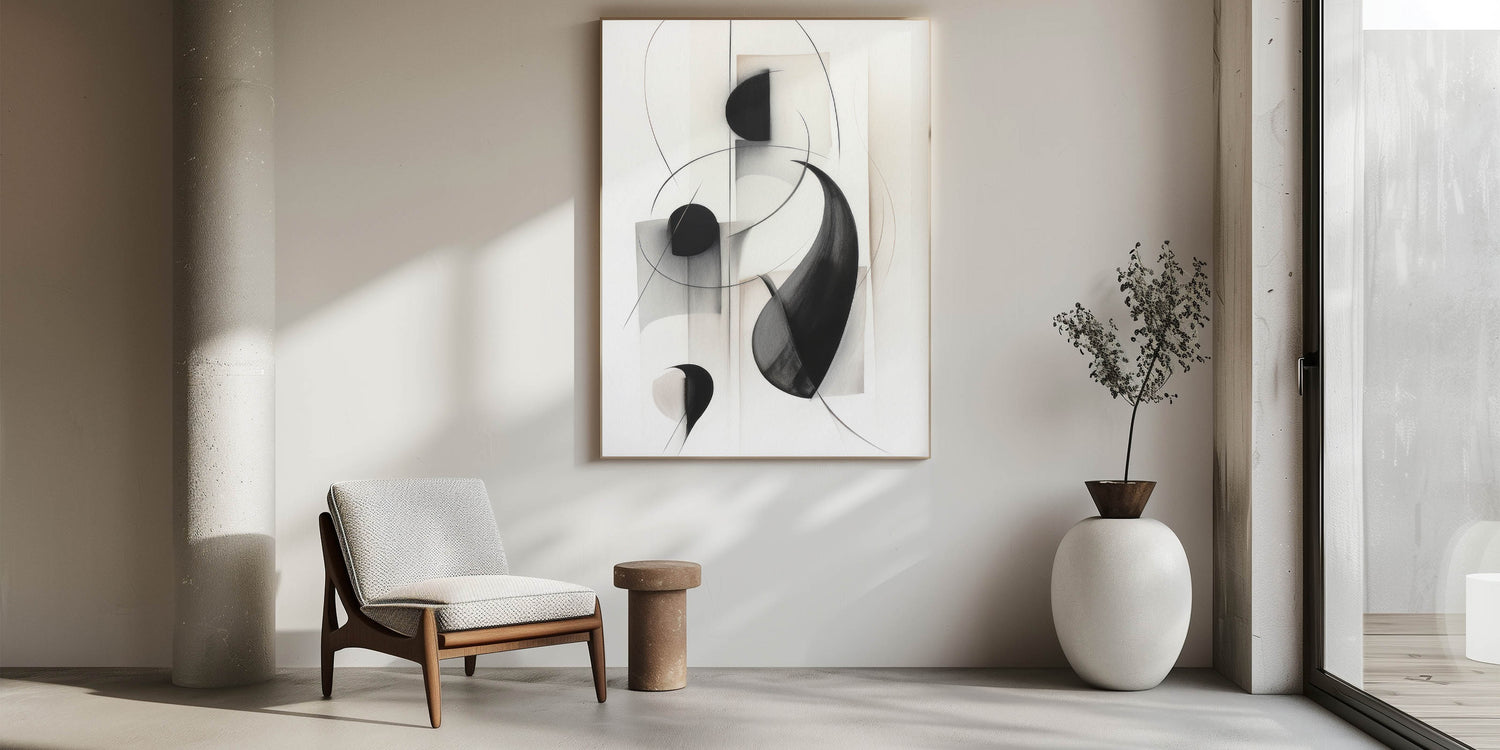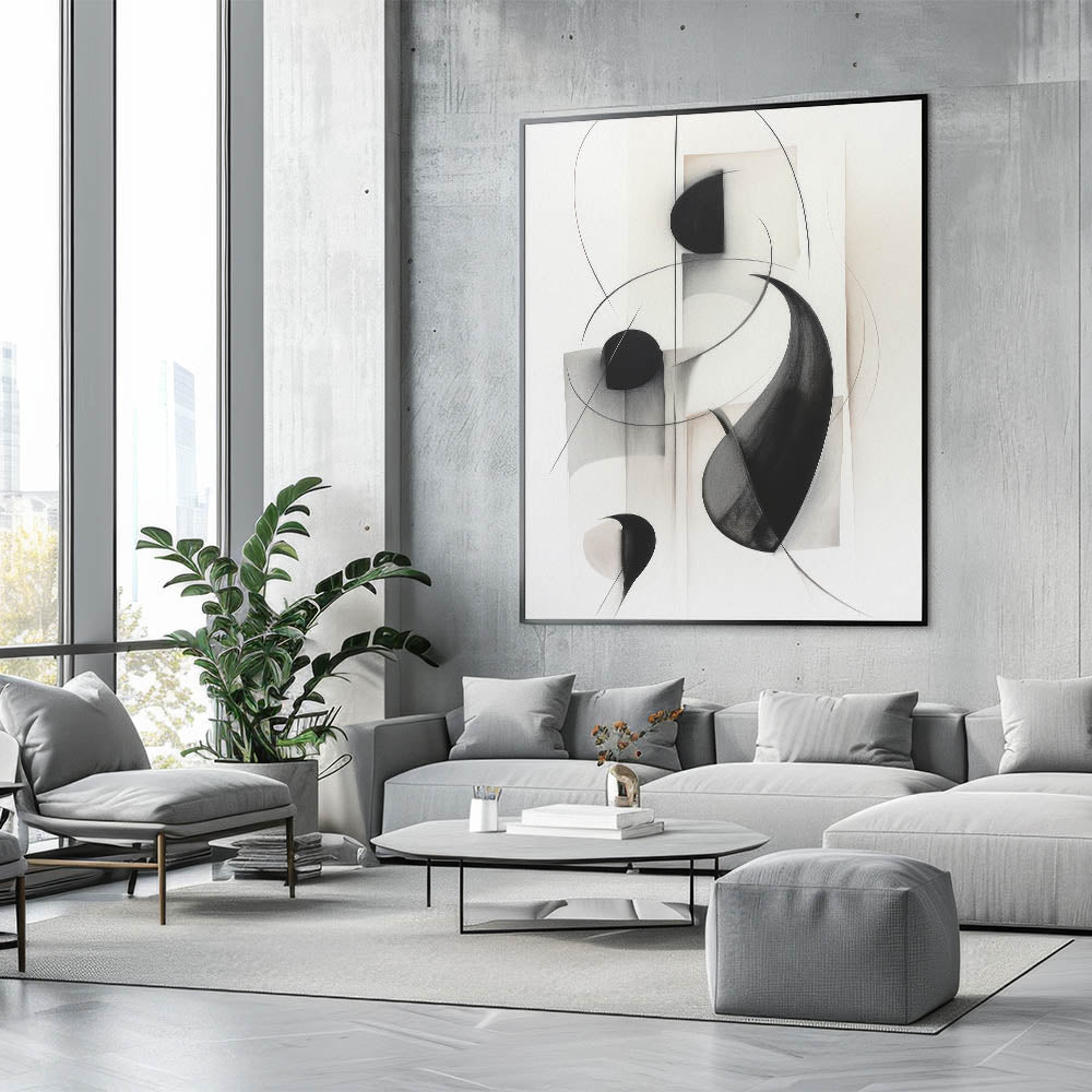 Minimalist Modern Abstract Wall Art - Black and White Geometric Canvas