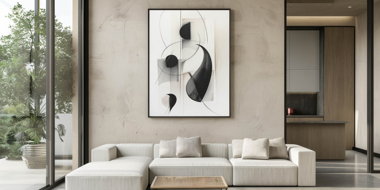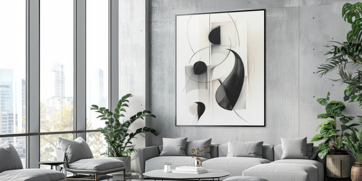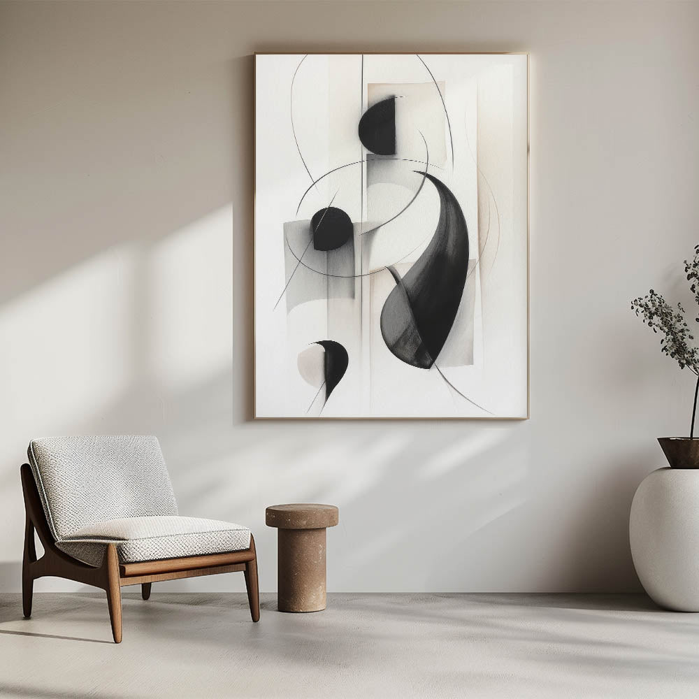 Minimalist Modern Abstract Wall Art - Black and White Geometric Canvas