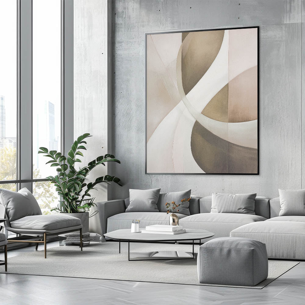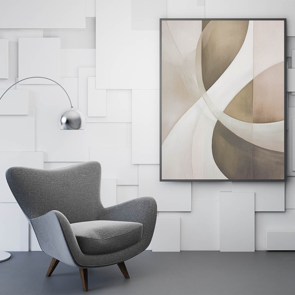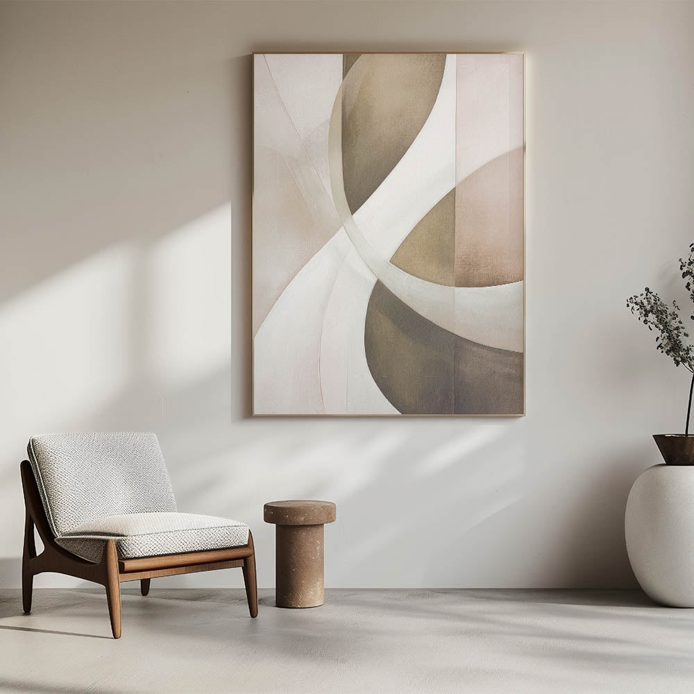 Modern Abstract Geometric Wall Art - Neutral Curved Canvas Design