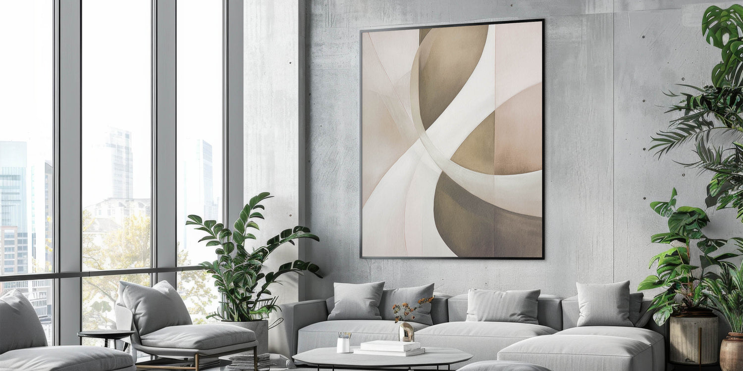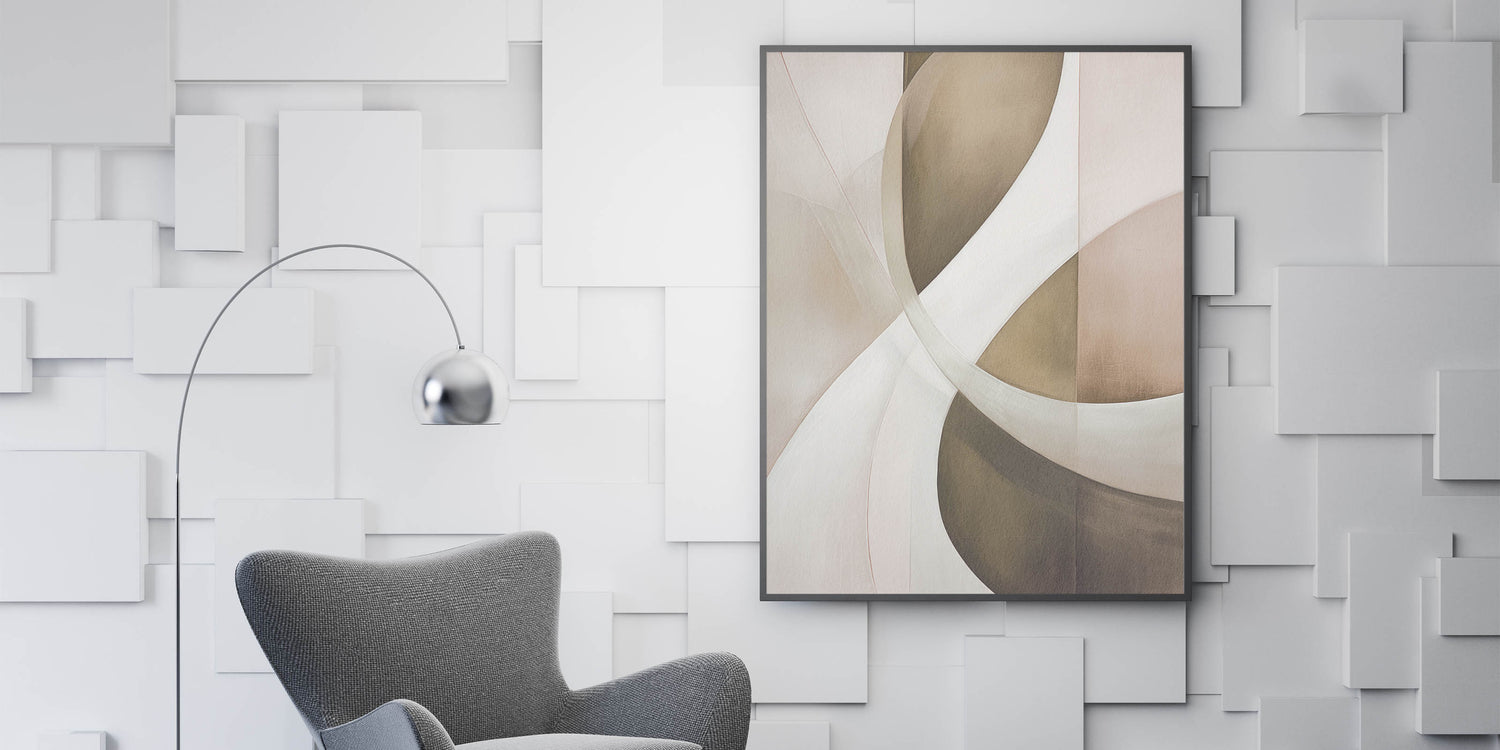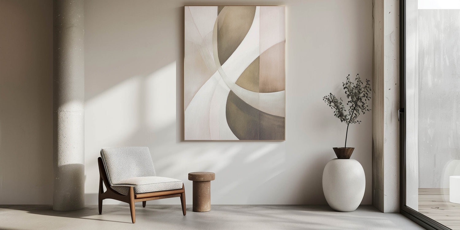 Modern Abstract Geometric Wall Art - Neutral Curved Canvas Design