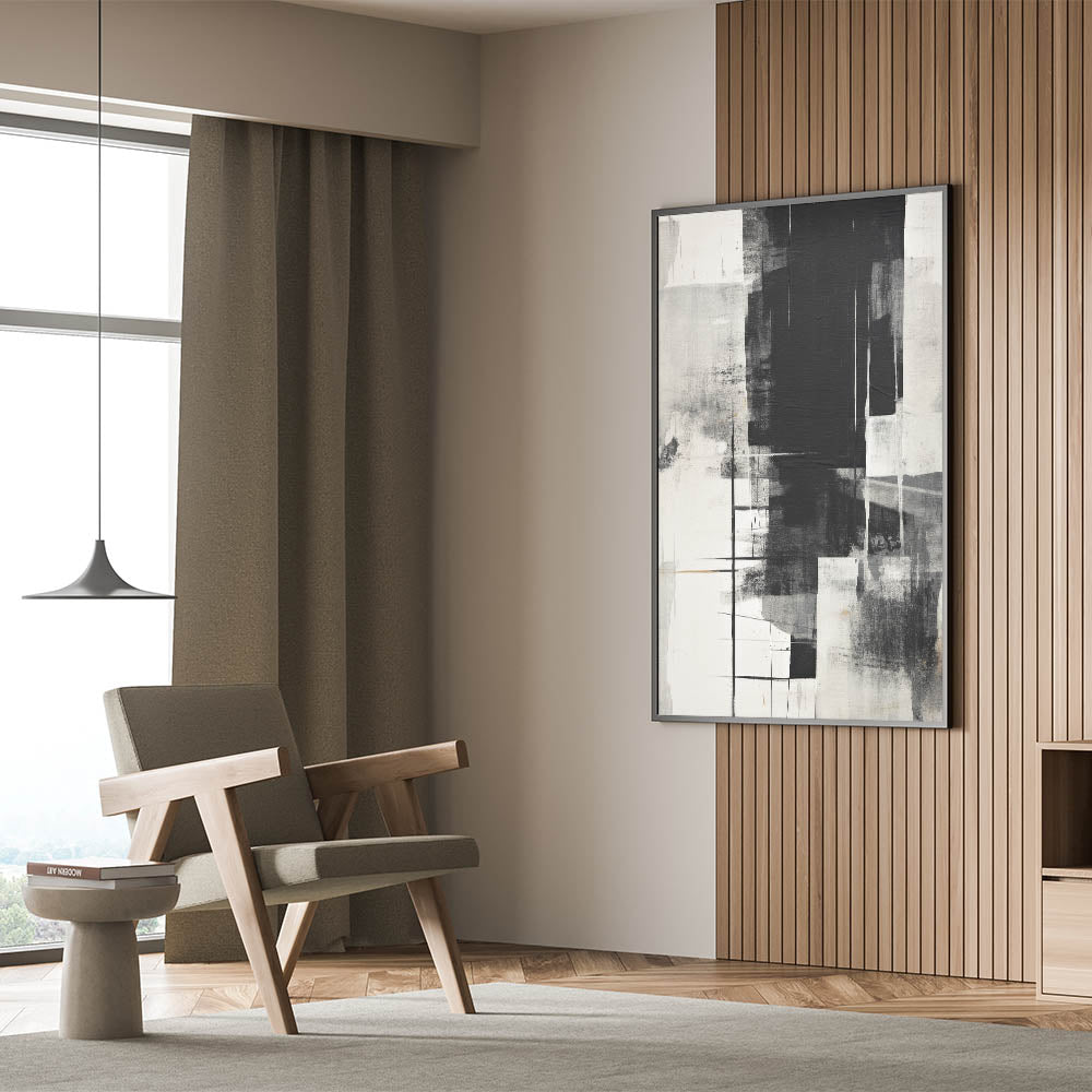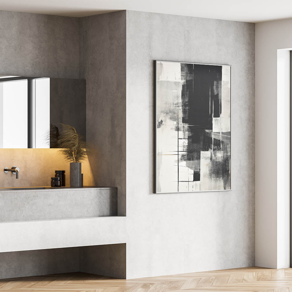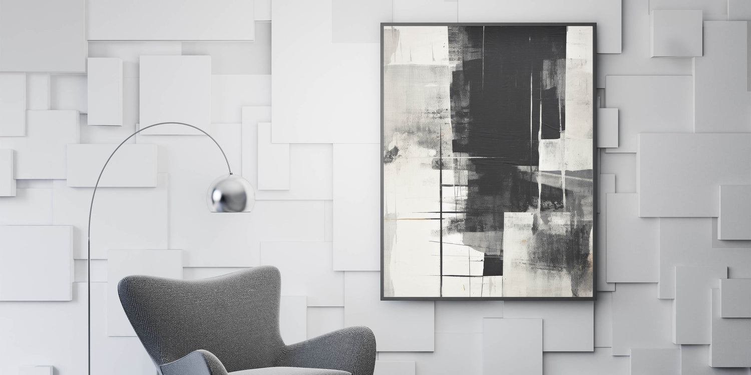 Modern Abstract Wall Art - Black & White Minimalist Geometric Canvas