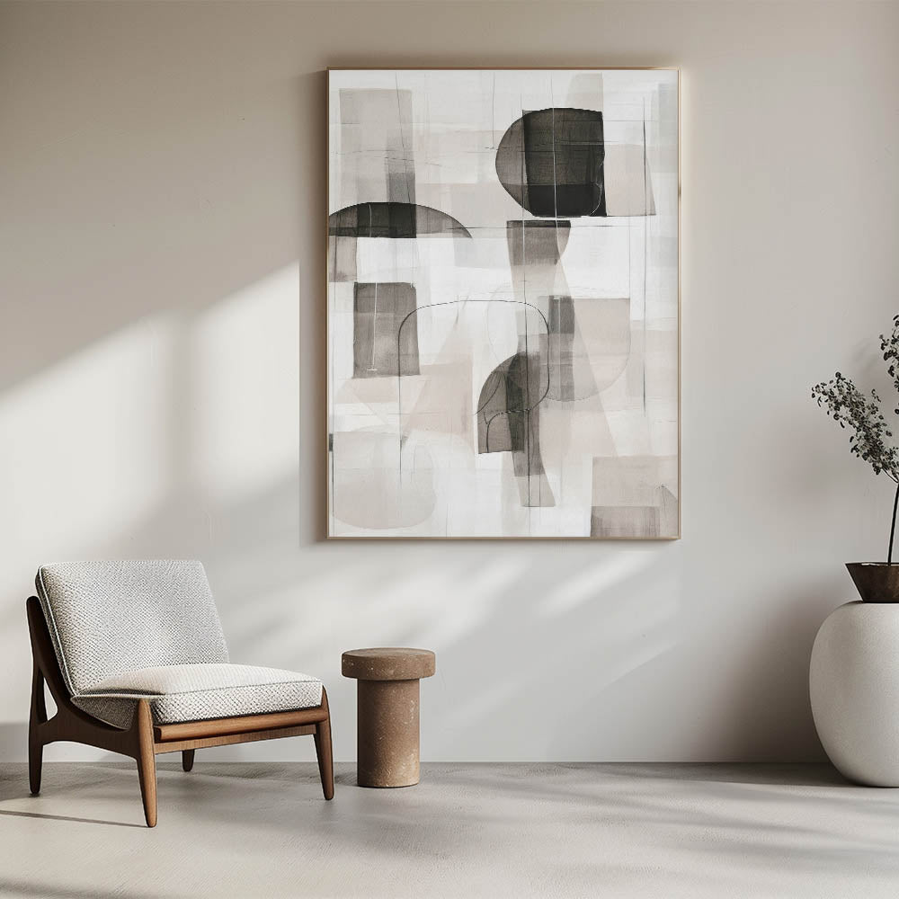 Introduce a touch of modern elegance to your space with this captivating piece of abstract art. Perfect for those who appreciate minimalist designs, this artwork combines geometric shapes with a subtle palette of grayscale tones, creating a sophisticated and serene ambiance. Ideal for contemporary home decor, this abstract art print is versatile and can effortlessly enhance any living room, bedroom, or office.