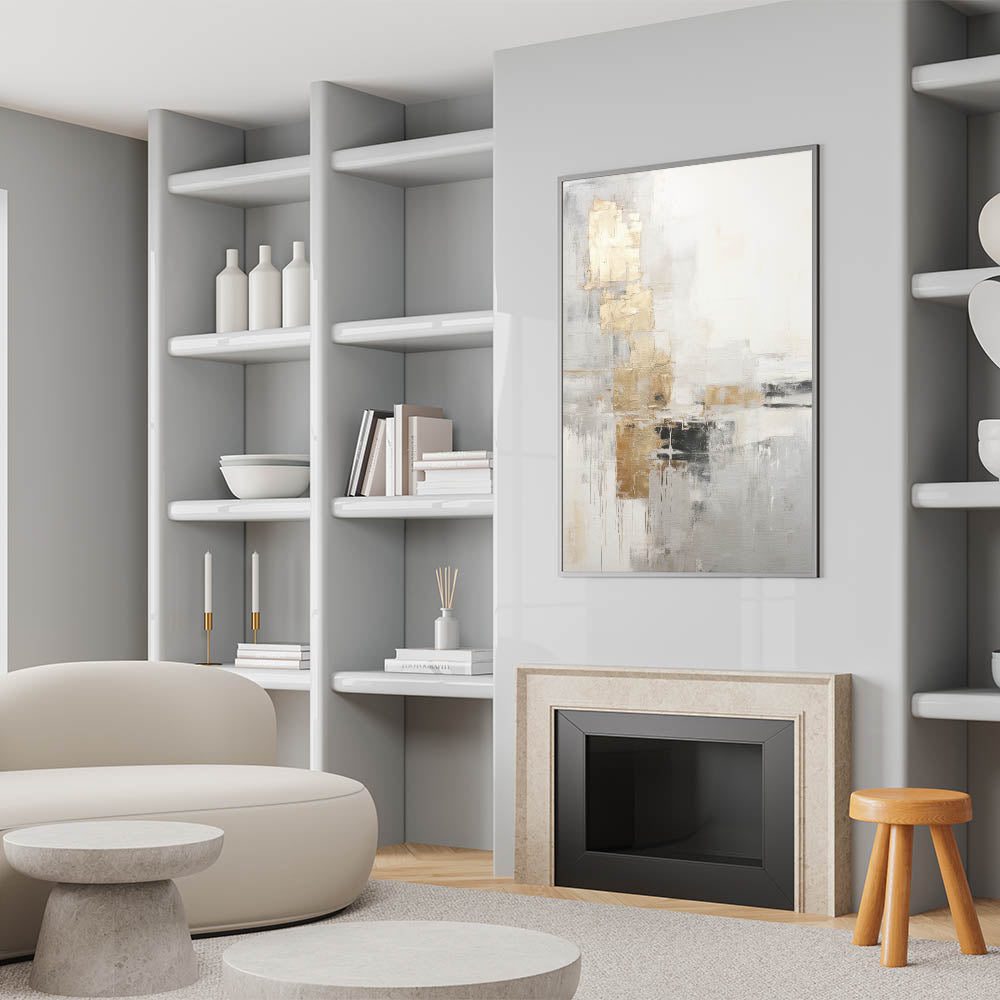 Modern Abstract Wall Art – Subtle Gold and Gray Geometric Layers