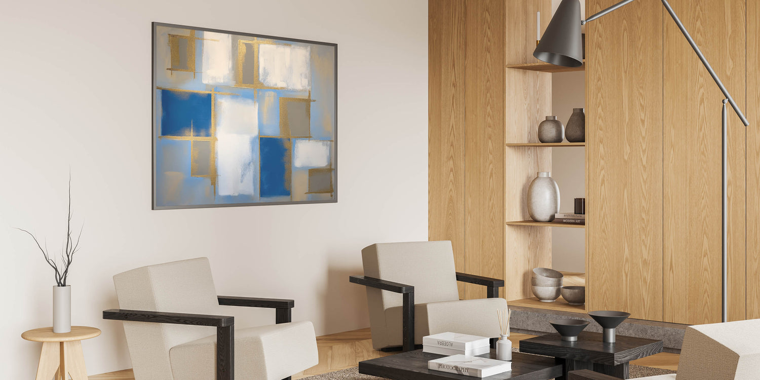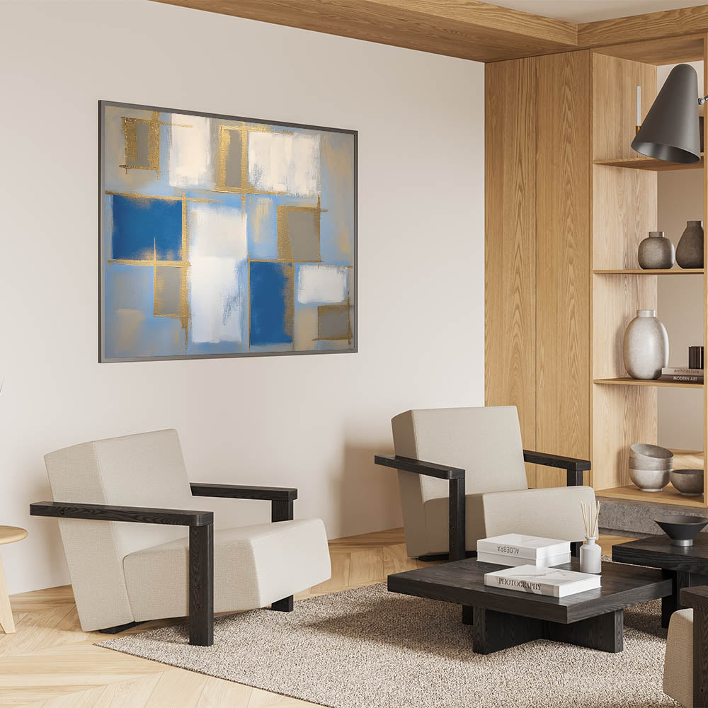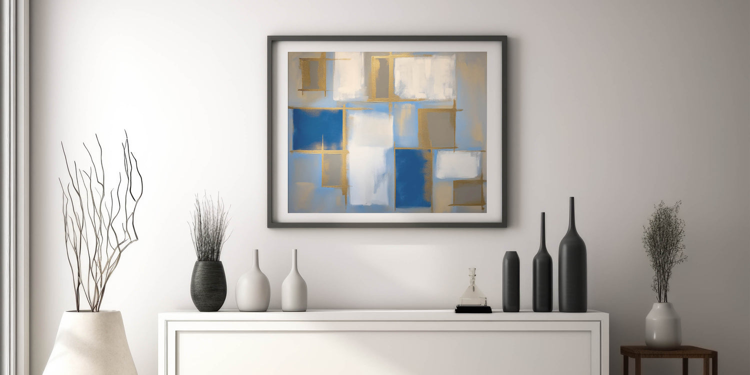 Modern Geometric Abstract Wall Art - Blue White and Gold