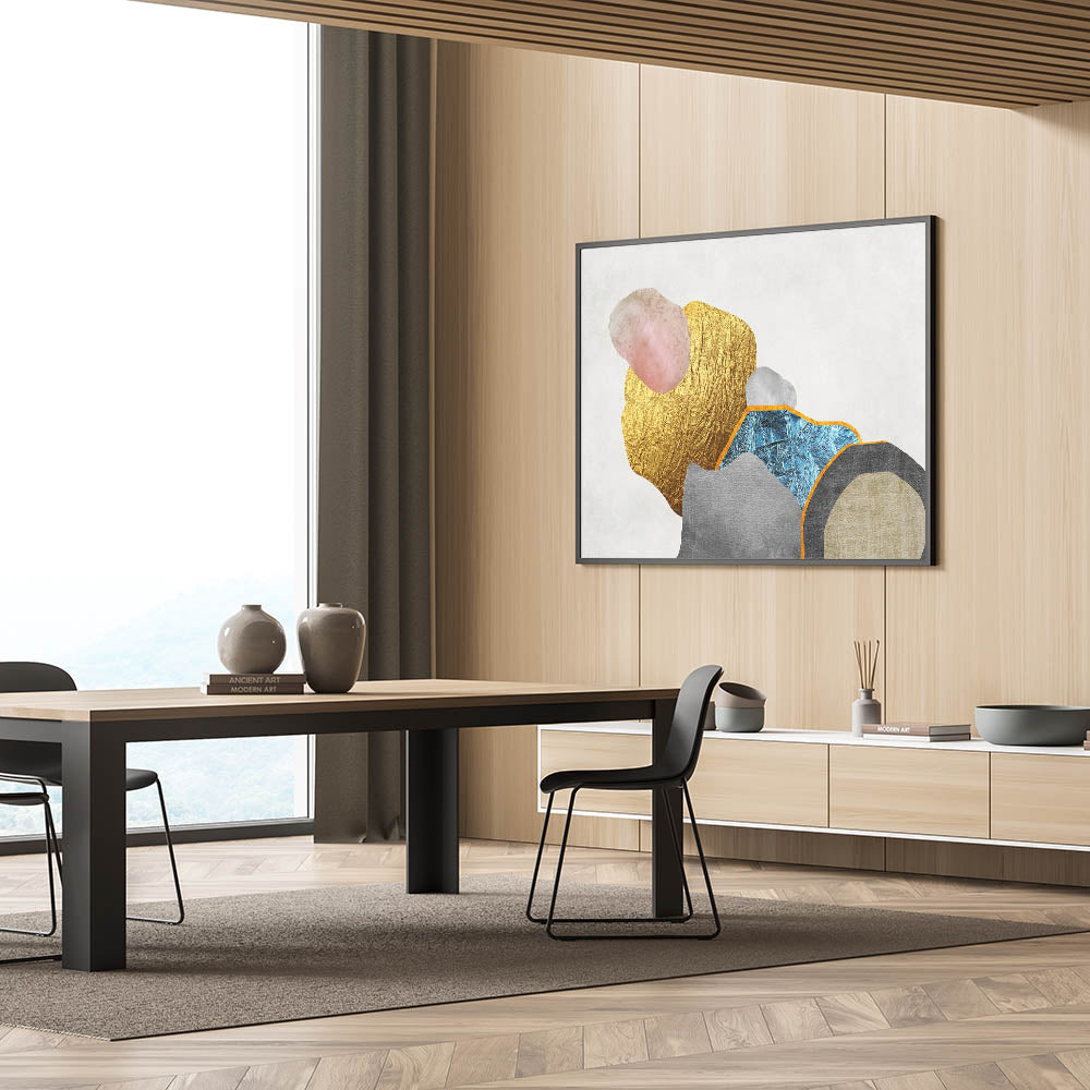 Vibrant Geometric Abstract Art with Gold & Pink Accents | Wall Décor