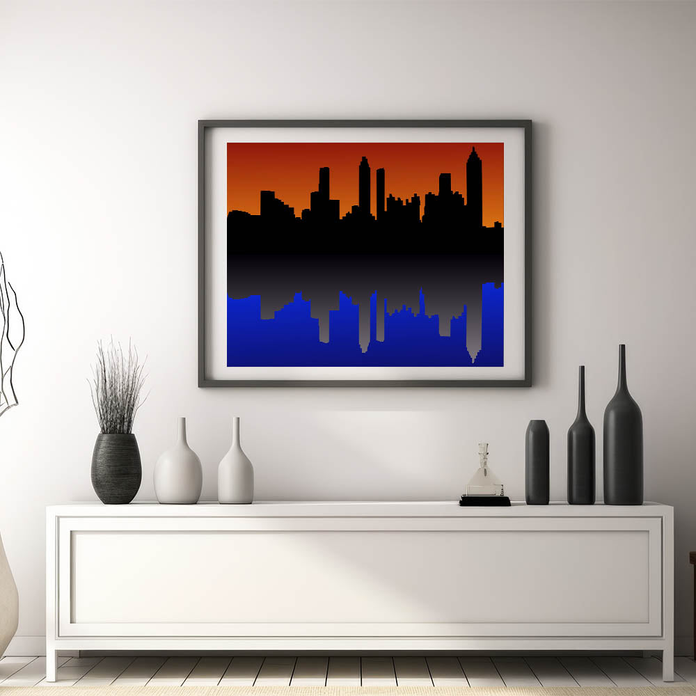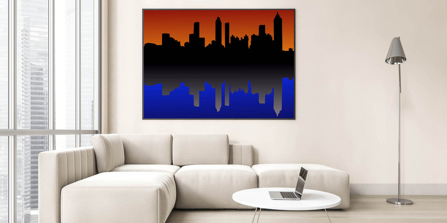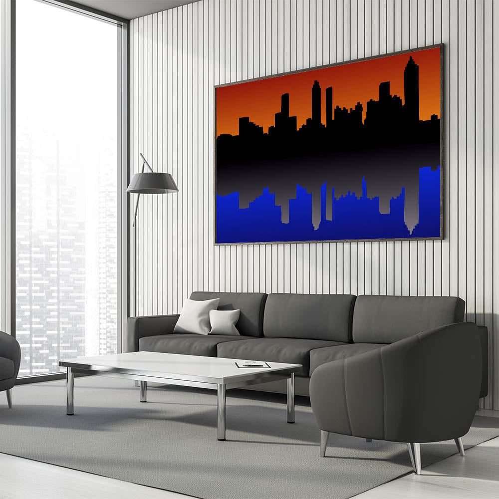Capture the beauty of Atlanta with this stunning sunset cityscape wall art. Featuring the iconic Atlanta skyline silhouetted against a vibrant orange and deep blue backdrop, this piece brings the city to life in a unique, modern design. Whether you're a proud Atlanta resident or a fan of its bustling energy, this artwork is a perfect addition to your home or office decor.