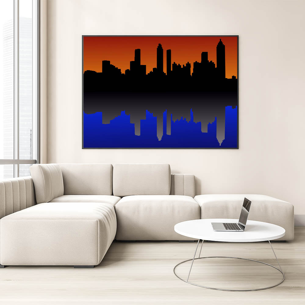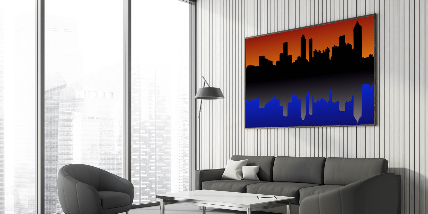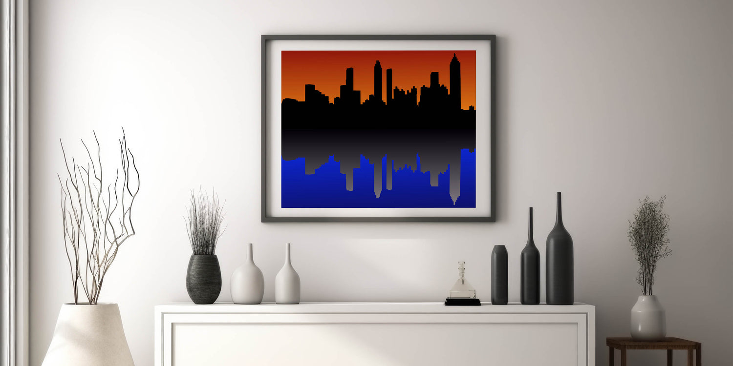 Capture the beauty of Atlanta with this stunning sunset cityscape wall art. Featuring the iconic Atlanta skyline silhouetted against a vibrant orange and deep blue backdrop, this piece brings the city to life in a unique, modern design. Whether you're a proud Atlanta resident or a fan of its bustling energy, this artwork is a perfect addition to your home or office decor.