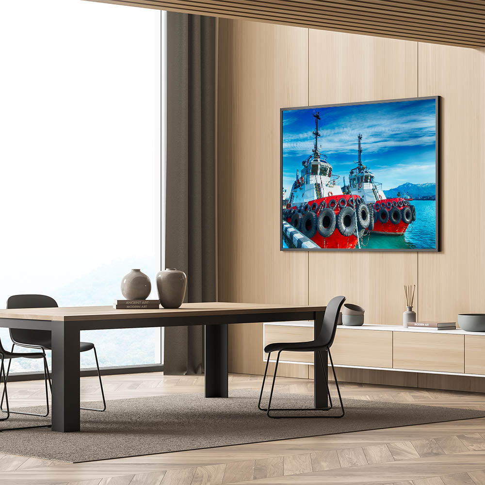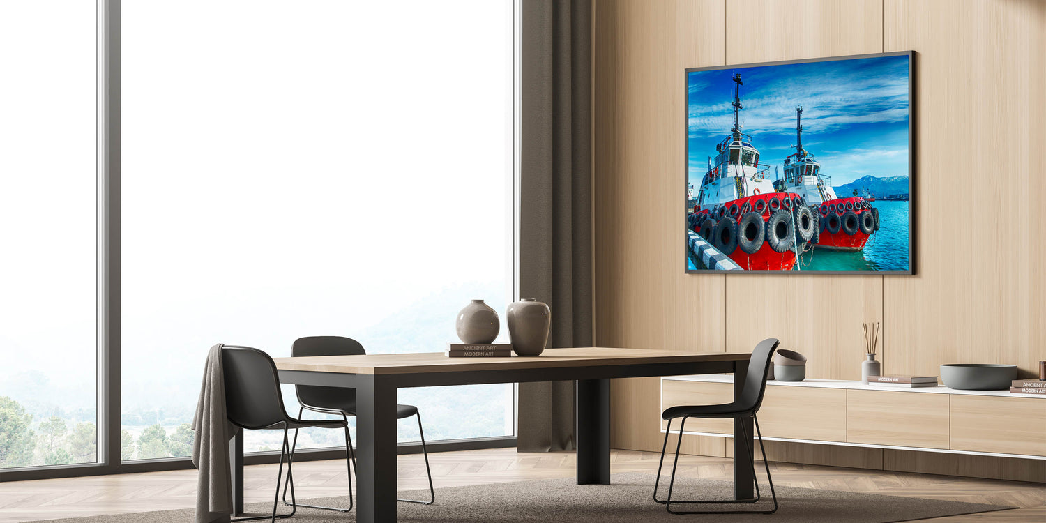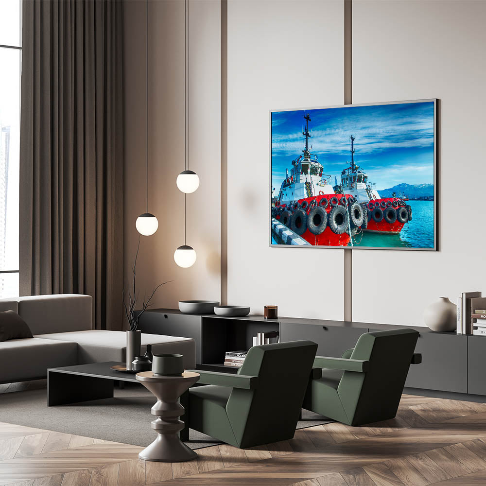 Capture the vibrant energy of Georgia’s coastal life with this stunning Georgia Photography Art. Featuring a striking port scene with bold red boats set against a backdrop of tranquil blue waters and distant mountains, this artwork brings a dynamic and refreshing feel to any space. Perfect for those who love maritime themes, this piece will add a touch of adventure and Georgian coastal charm to your home decor.