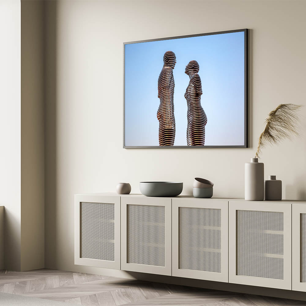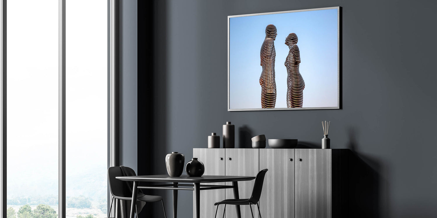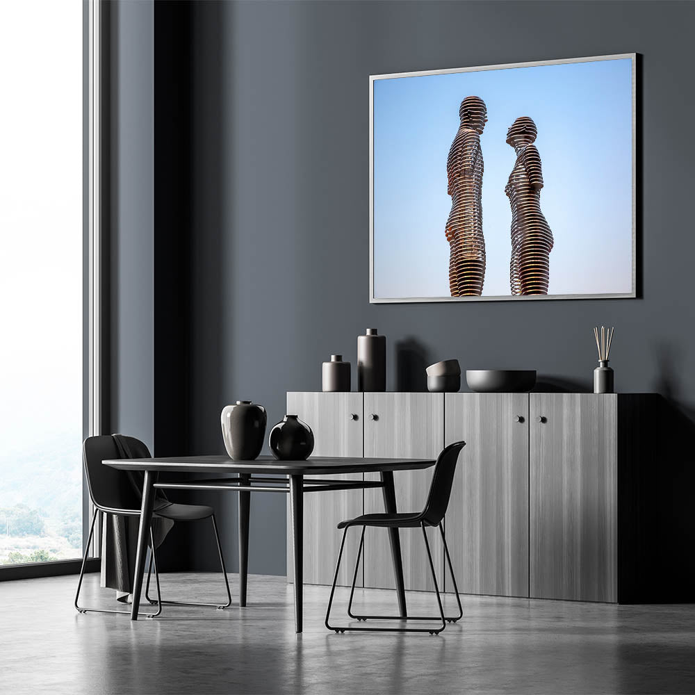 Celebrate the beauty of contemporary art with this stunning wall print of the famous Georgian sculpture, capturing two figures in an abstract and modern form. The dynamic design of this sculpture art symbolizes movement, love, and connection, making it an iconic piece from Georgia’s rich cultural heritage. The minimalist background enhances the sculpture’s striking silhouette, creating a perfect blend of art and simplicity.