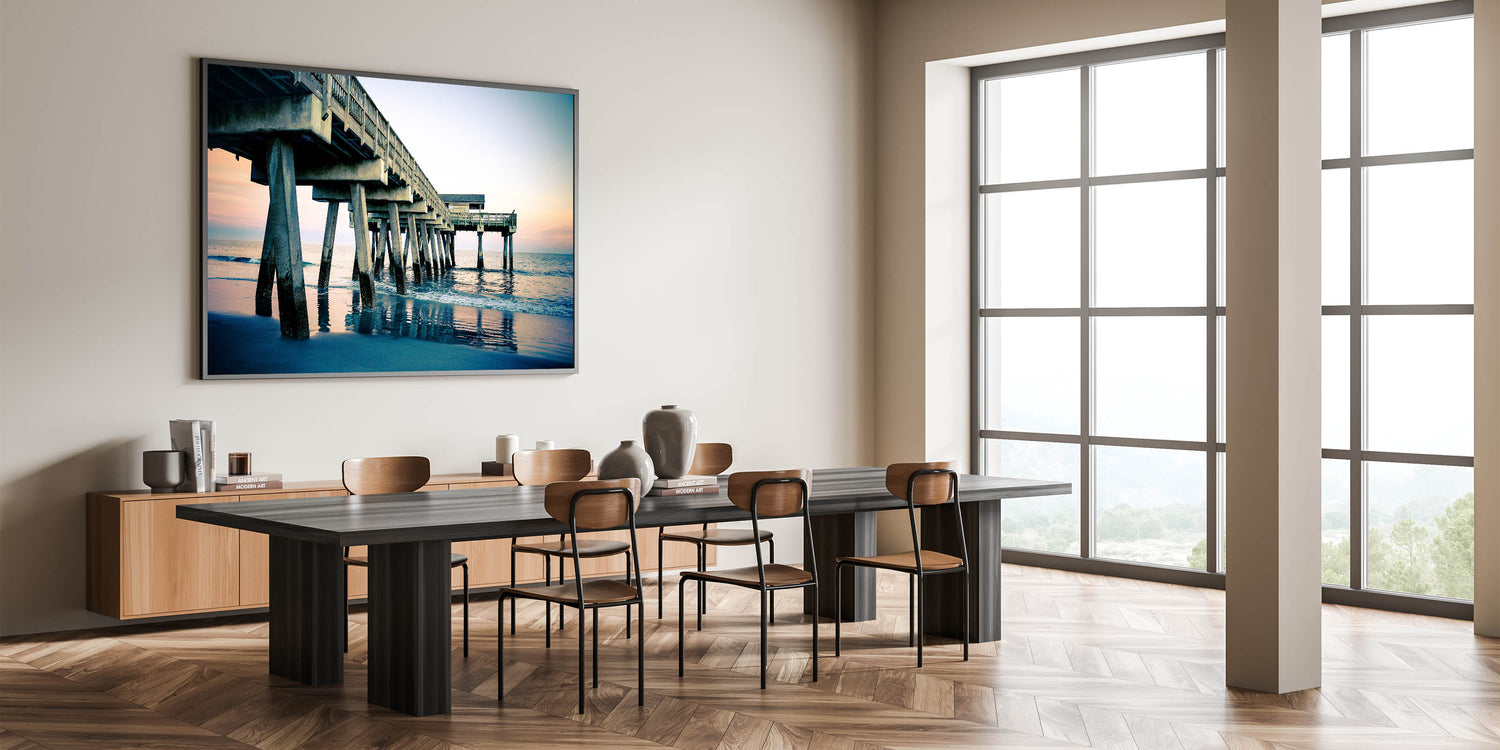 • High-quality Savannah Georgia photography print showcasing a peaceful pier at sunset
