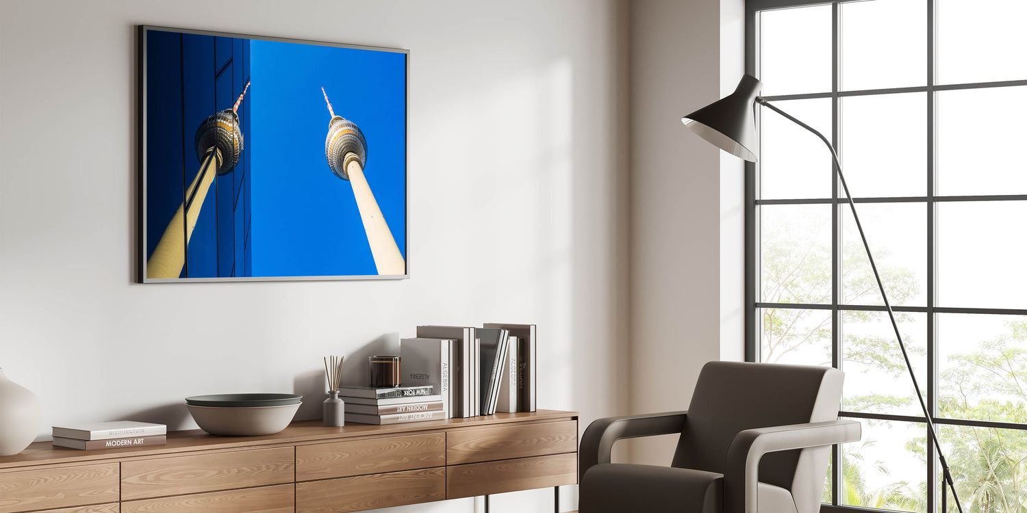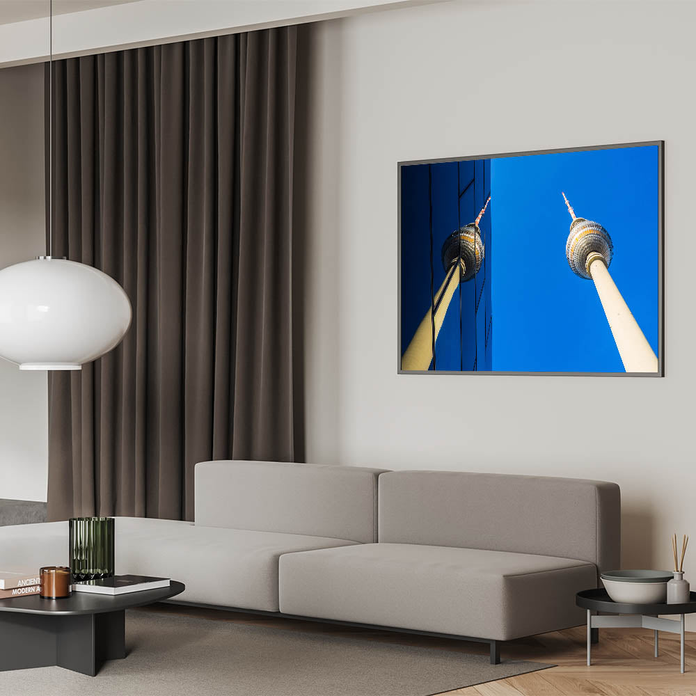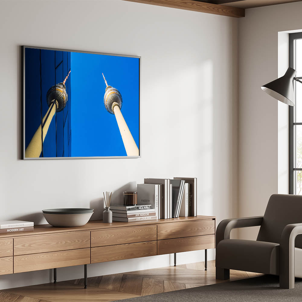 • Berlin-Inspired Art: A stunning reflection of the Berlin TV Tower, blending modern architecture with iconic landmarks.