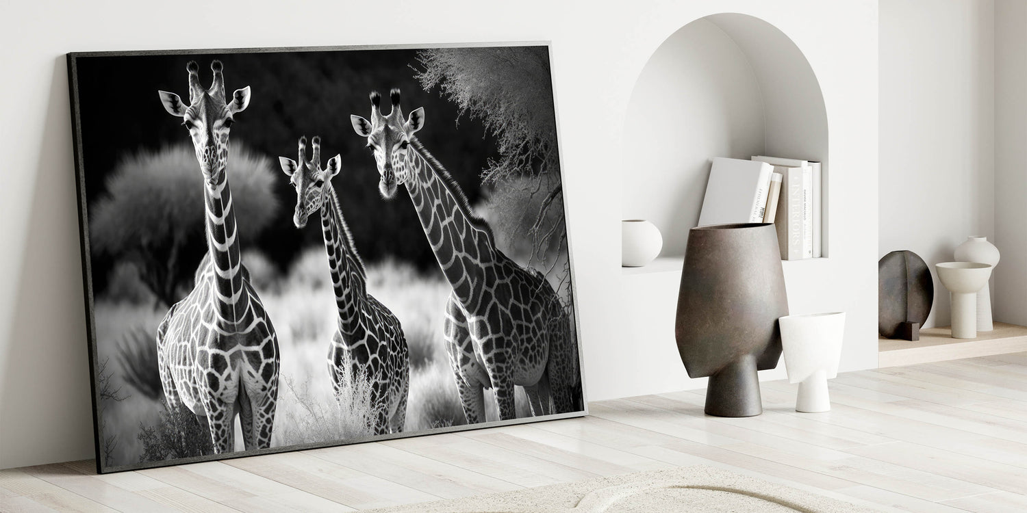 Enhance your interior with this beautiful giraffe artwork, a perfect blend of elegance and nature. It’s more than just decor; it’s a piece that tells a story and adds depth to any room.
