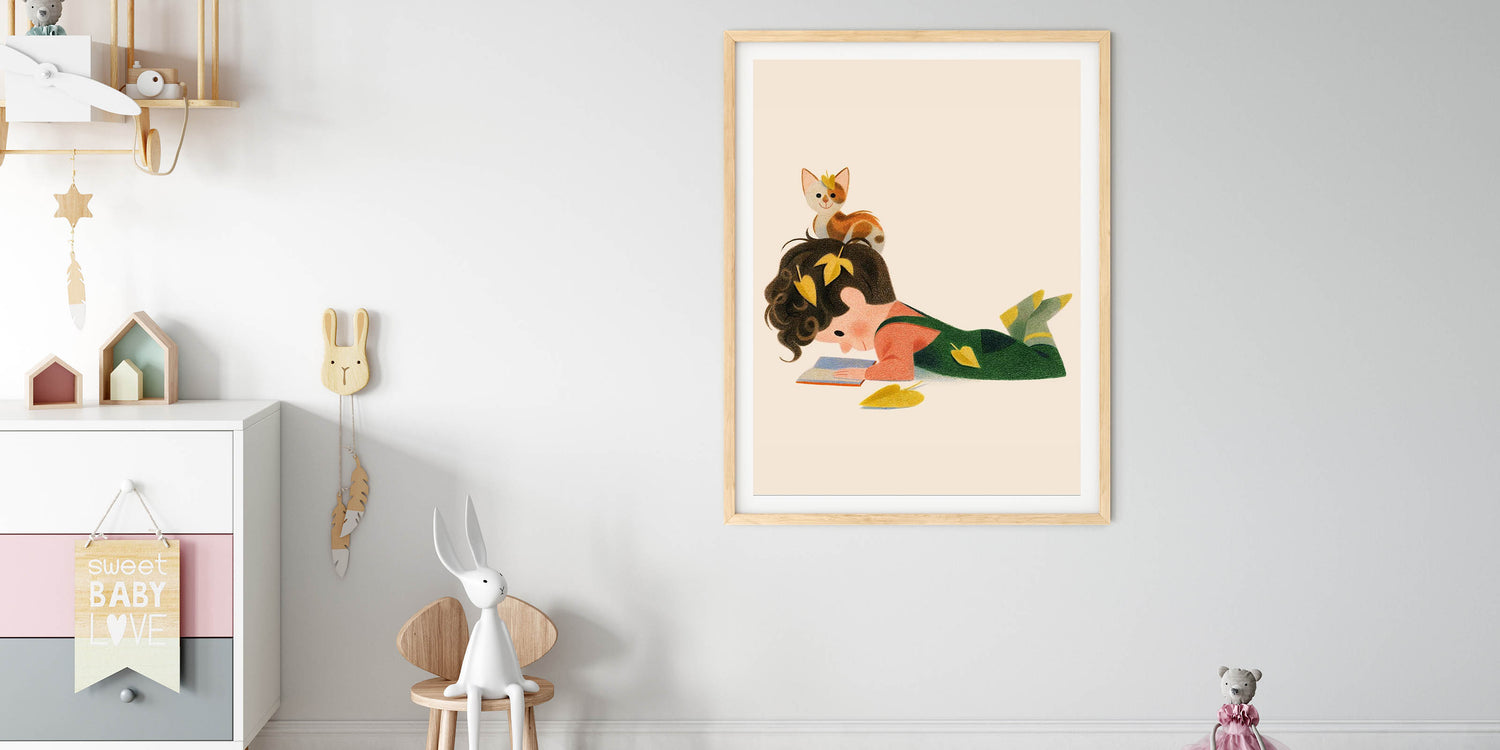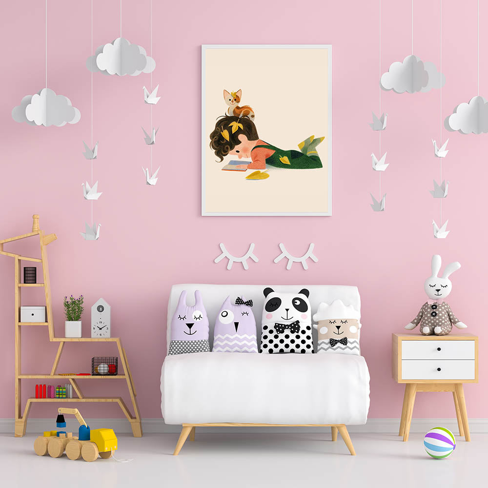 Cozy Reading Time Girls Room Wall Art – Kids Room Art Print