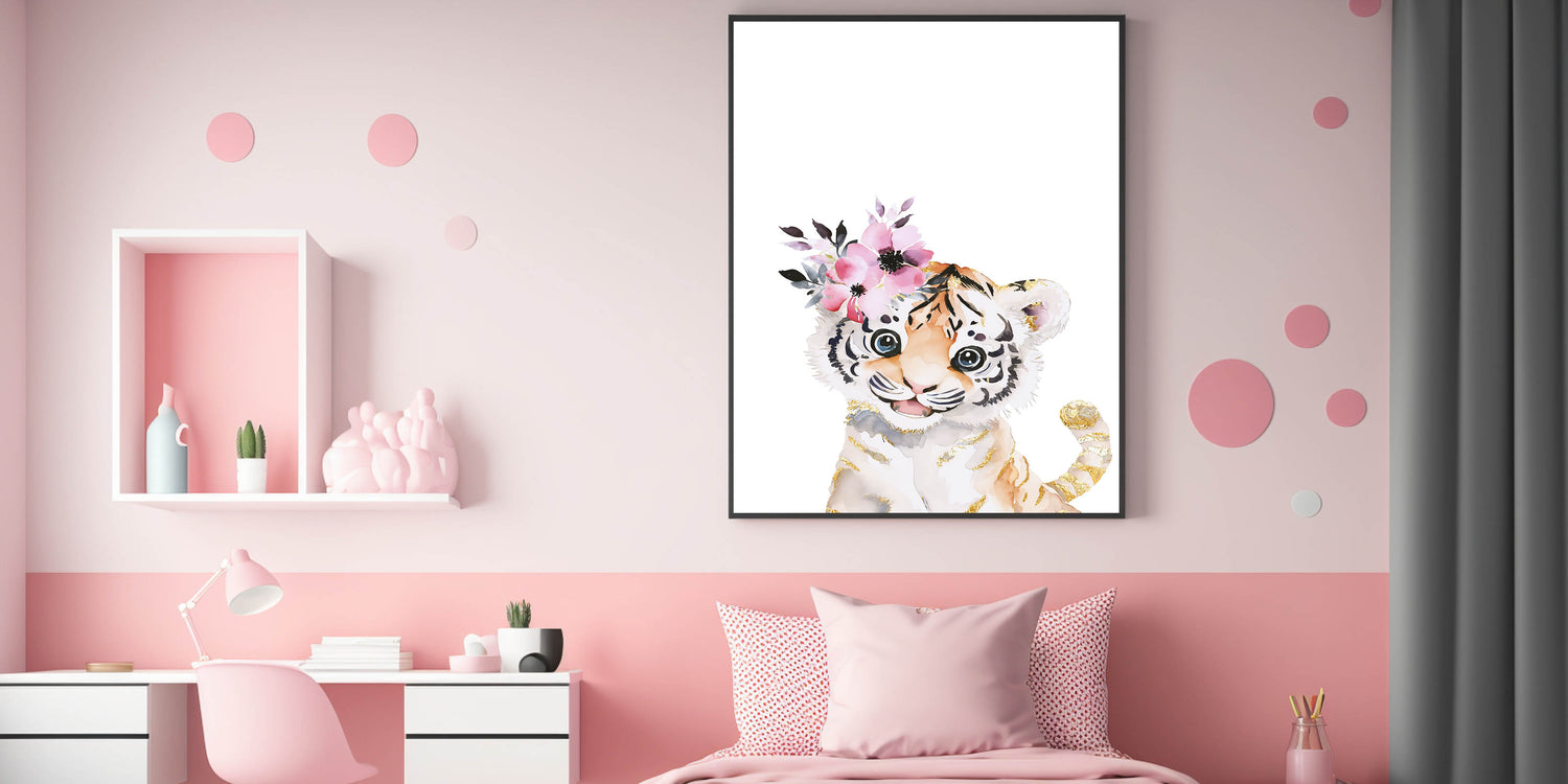 Floral Baby Tiger Girls Room Wall Art – Nursery Print