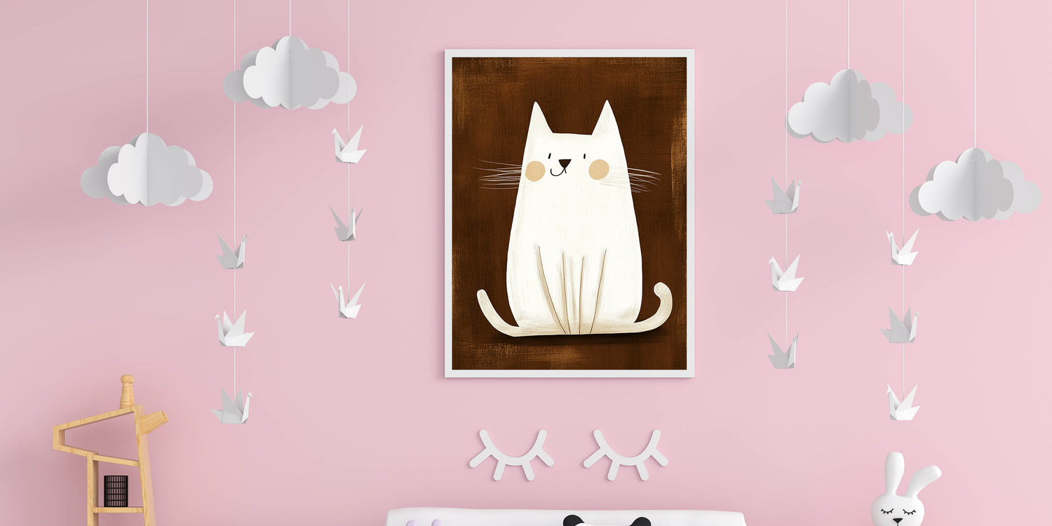 Nursery Wall Art – Adorable Minimalist Cat Print for Kids' Rooms