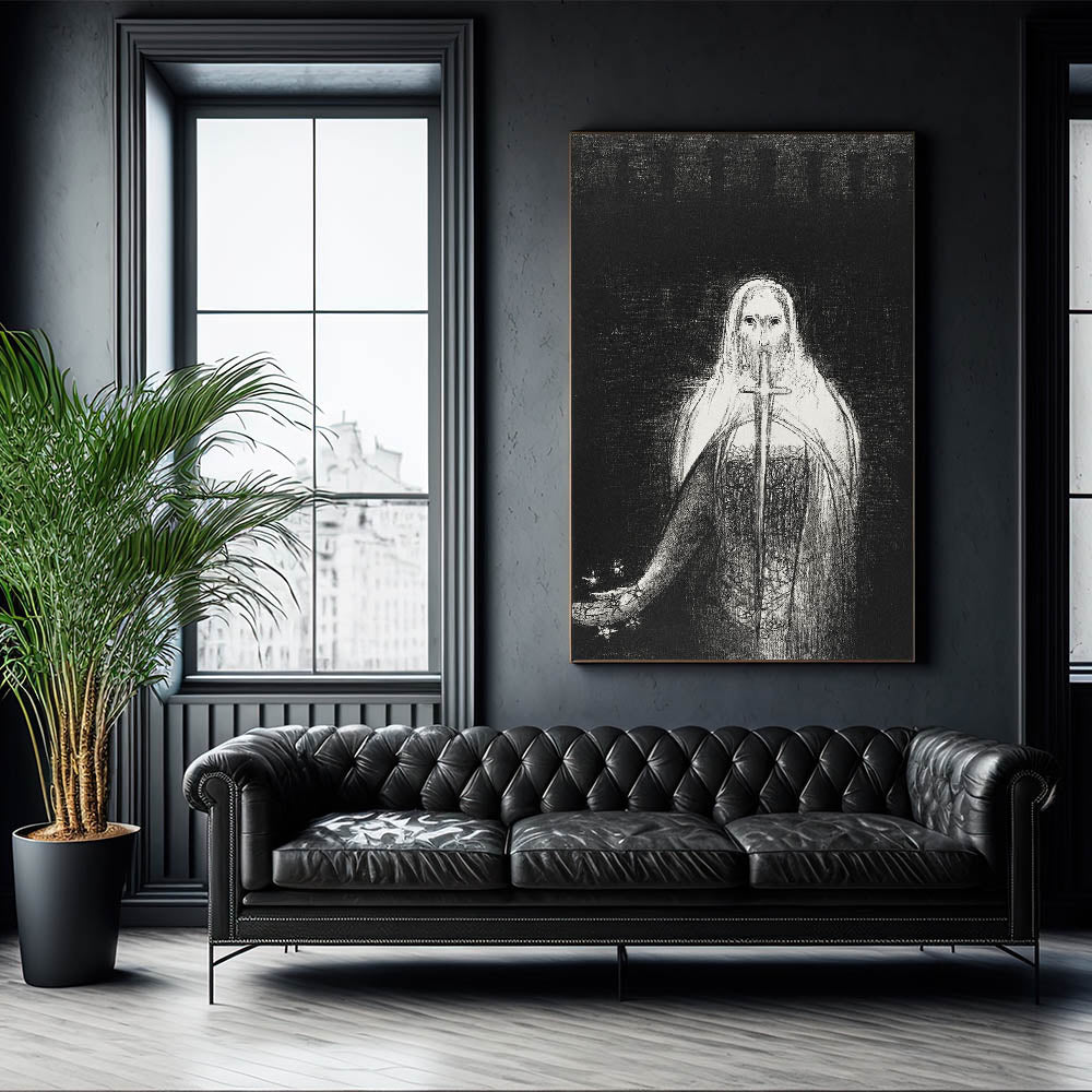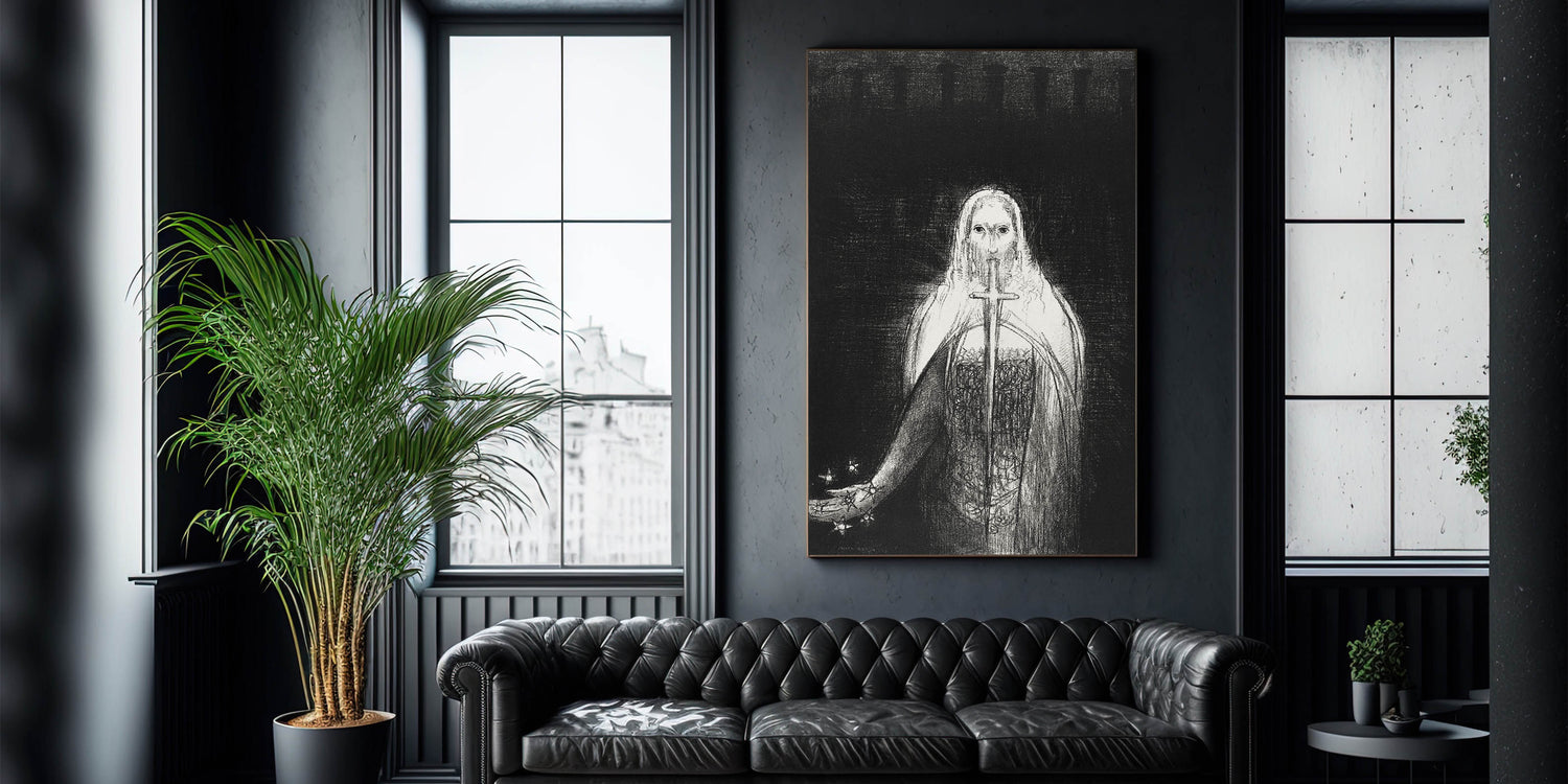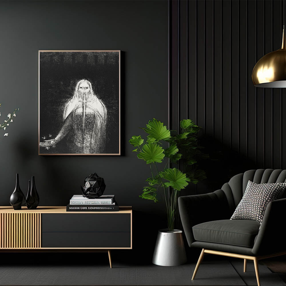 Transform your space with this timeless Gothic artwork that channels the mystique and power of a dark warrior. Perfect for creating an intense and captivating atmosphere, this piece adds an element of intrigue and strength to your decor.