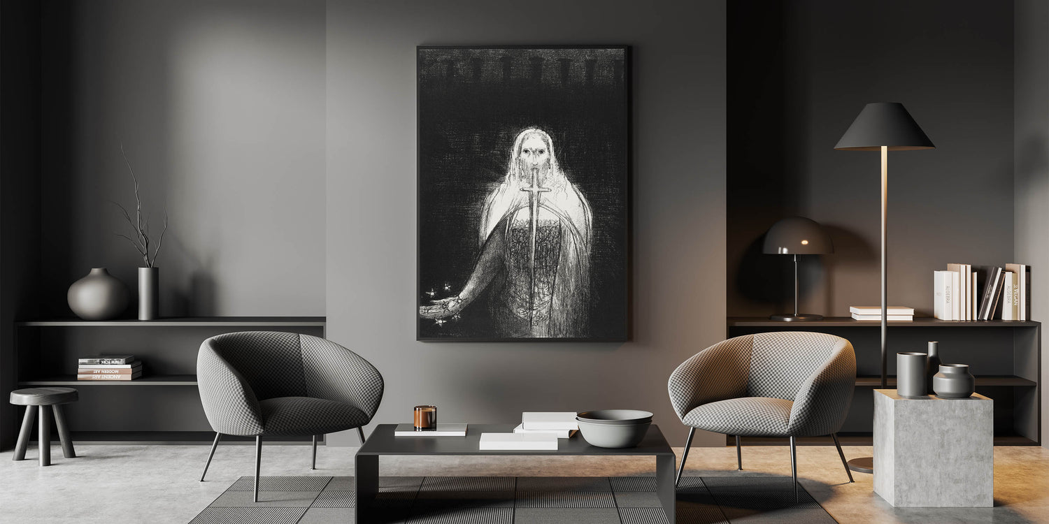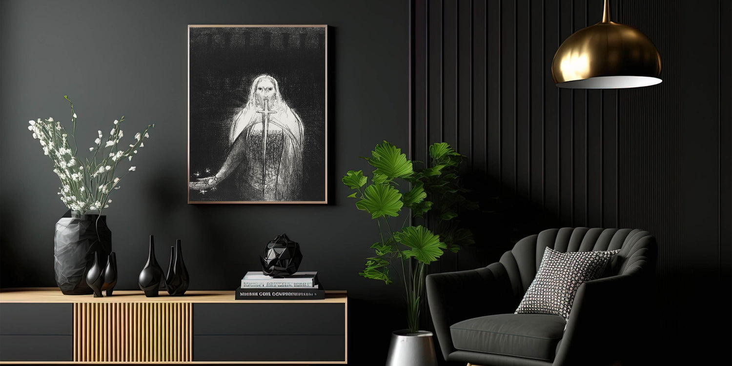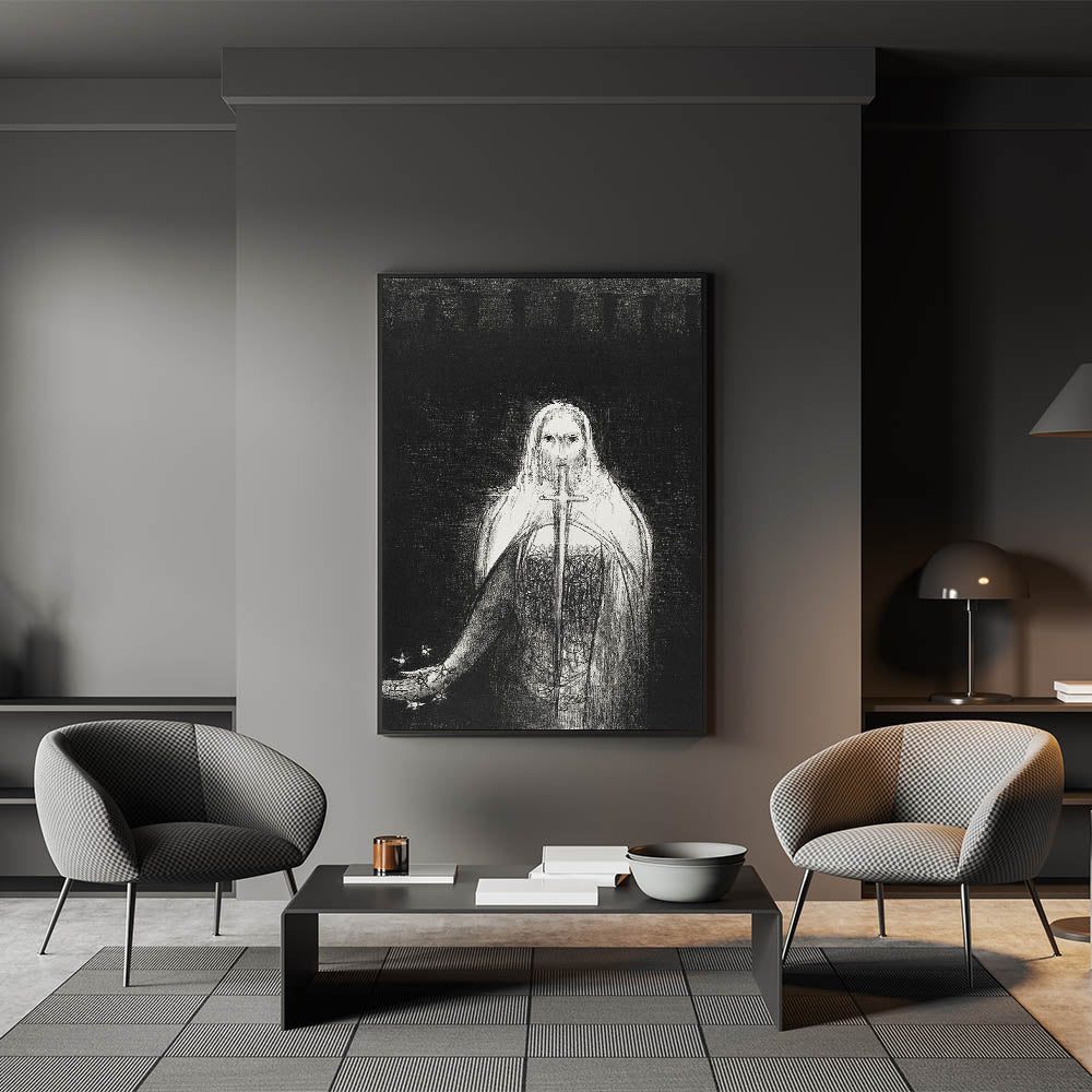 Transform your space with this timeless Gothic artwork that channels the mystique and power of a dark warrior. Perfect for creating an intense and captivating atmosphere, this piece adds an element of intrigue and strength to your decor.